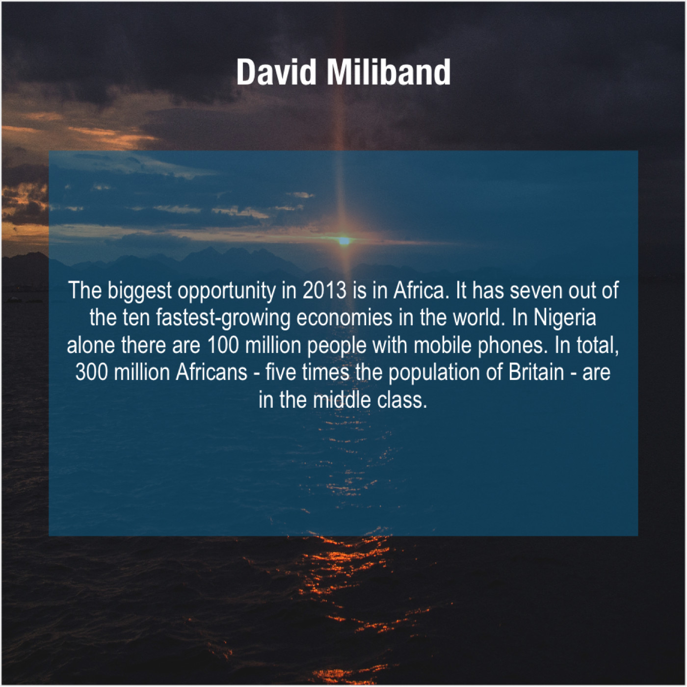 “The biggest opportunity in 2013 is in Africa. It has seven out of the ten fastest-growing economies in the world. In Nigeria alone there are 100 million people with mobile phones. In total, 300 million Africans – five times the population of Britain – are in the middle class.”