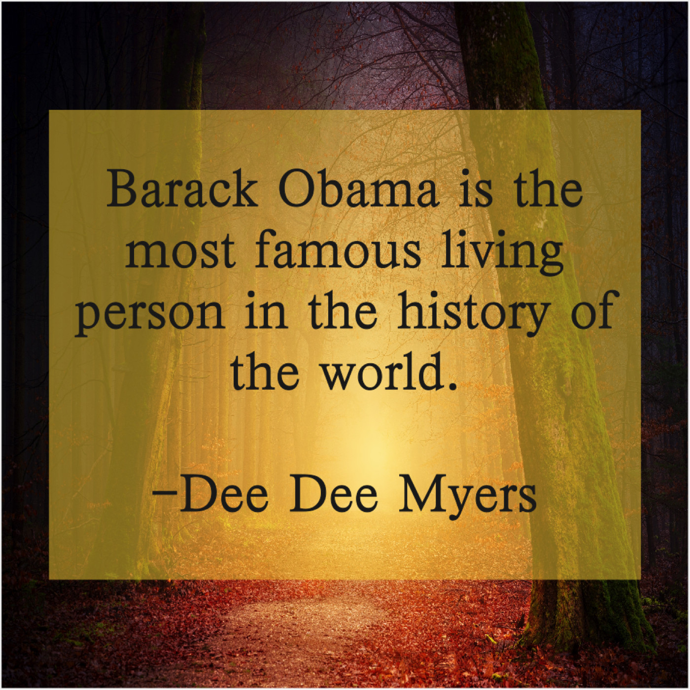 Dee Dee Myers Dee Dee Myers – Barack Obama is the most… March 10, 2019 admin “Barack Obama is the most famous living person in the history of the world.”-Dee Dee Myers