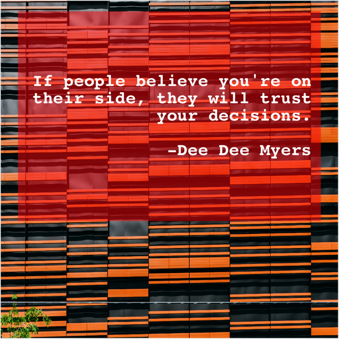 Dee Dee Myers Dee Dee Myers – If people believe you’re on… September 2, 2019 admin “If people believe you’re on their side, they will trust your decisions.”-Dee Dee Myers