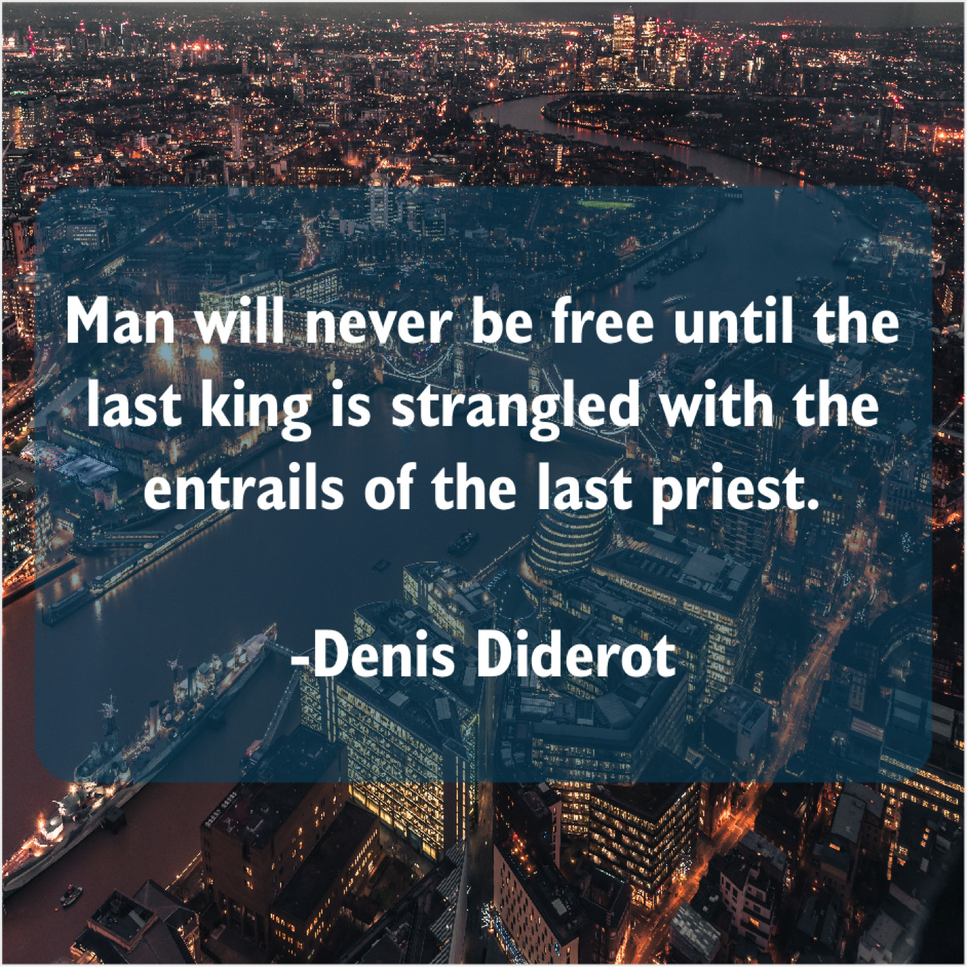 Denis Diderot Denis Diderot – Man will never be free… July 4, 2019 admin “Man will never be free until the last king is strangled with the entrails of the last priest.”-Denis Diderot