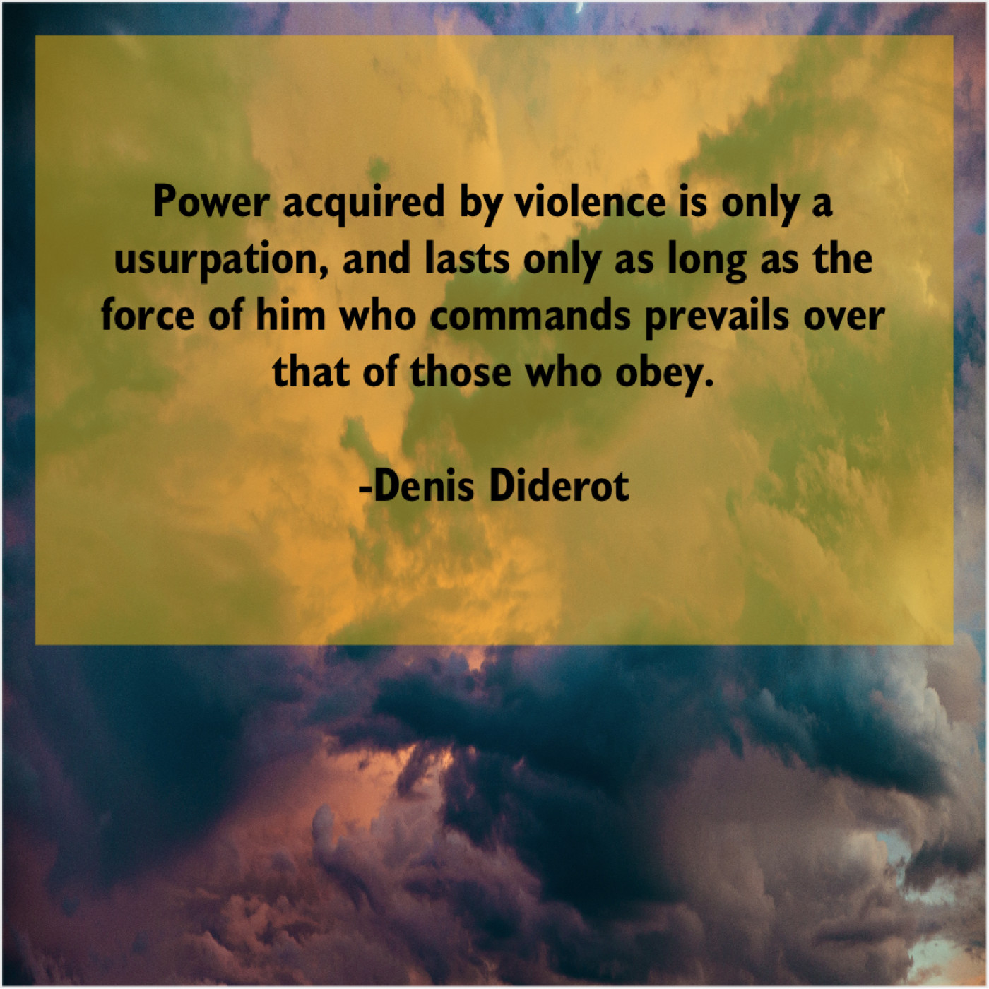 Denis Diderot Denis Diderot – Power acquired by violence is… April 10, 2019 admin “Power acquired by violence is only a usurpation, and lasts only as long as the force of him who commands prevails over that of those who obey.”-Denis Diderot