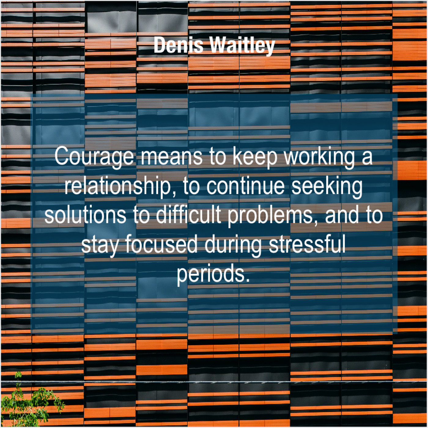 Denis Waitley Denis Waitley – Courage means to keep working… January 5, 2019 admin “Courage means to keep working a relationship, to continue seeking solutions to difficult problems, and to stay focused during stressful periods.”-Denis Waitley