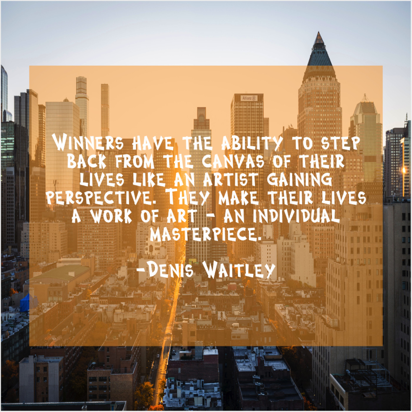 Denis Waitley Denis Waitley – Winners have the ability to… March 29, 2019 admin “Winners have the ability to step back from the canvas of their lives like an artist gaining perspective. They make their lives a work of art – an individual masterpiece.”-Denis Waitley