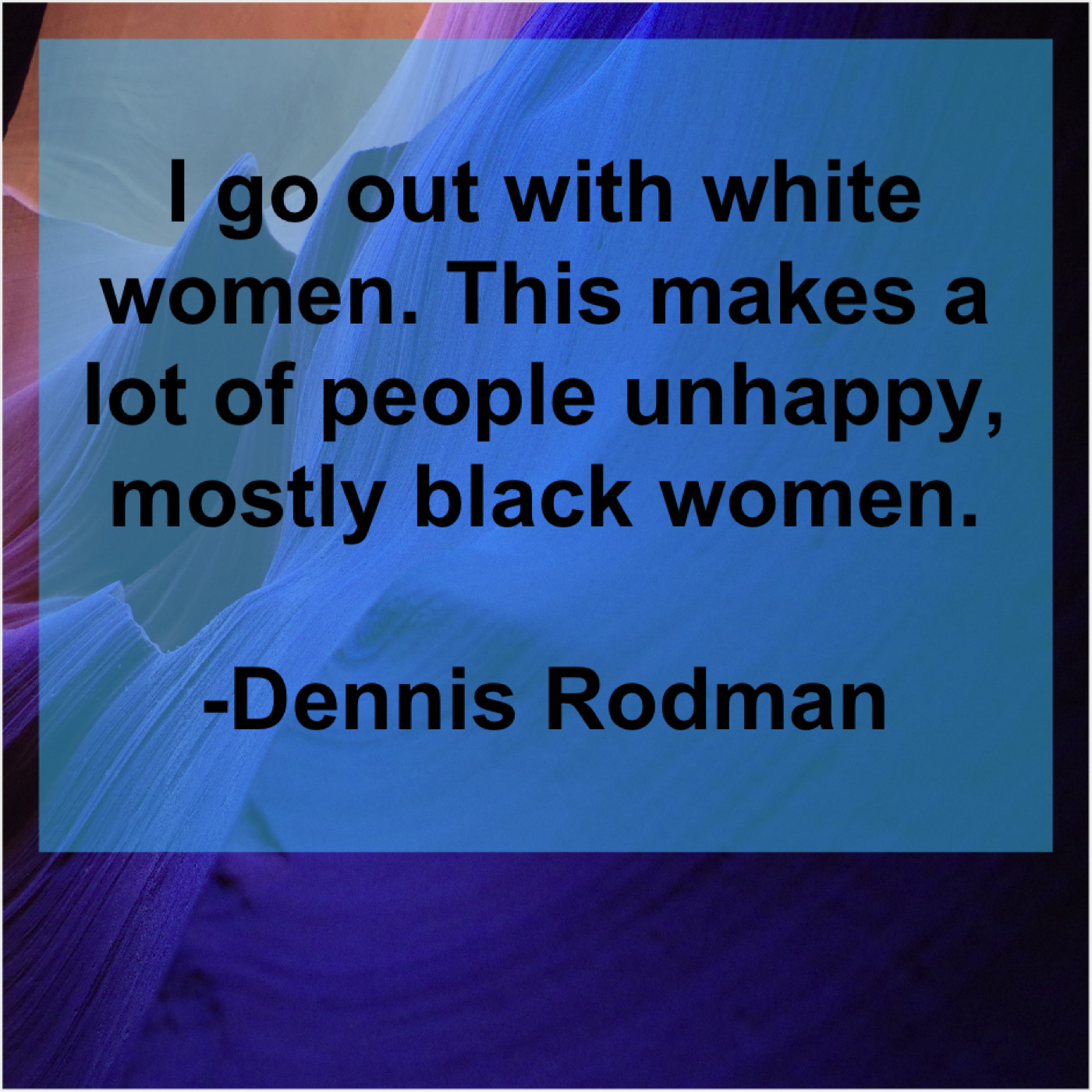 Dennis Rodman Dennis Rodman – I go out with white… May 26, 2019 admin “I go out with white women. This makes a lot of people unhappy, mostly black women.”-Dennis Rodman