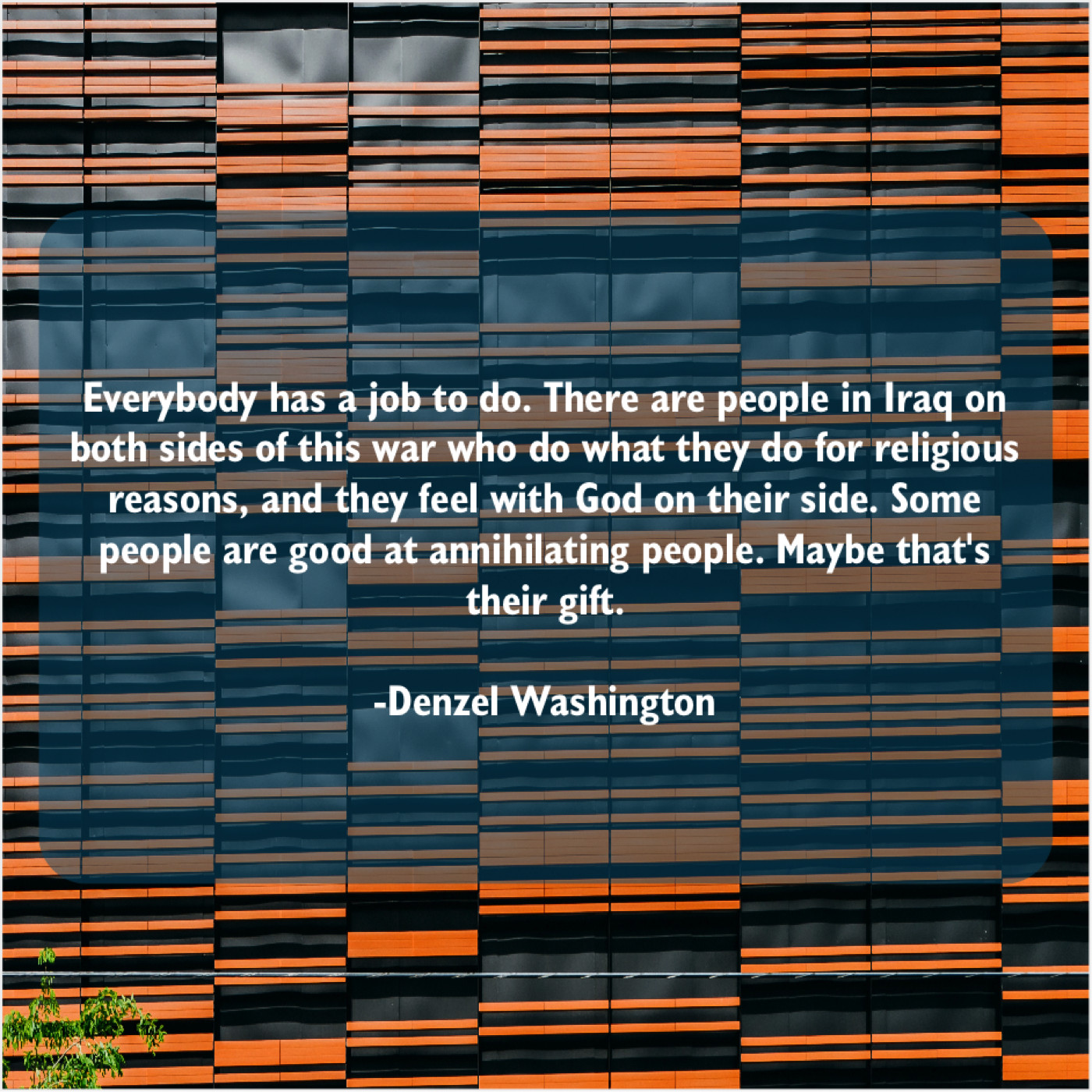 “Everybody has a job to do. There are people in Iraq on both sides of this war who do what they do for religious reasons, and they feel with God on their side. Some people are good at annihilating people. Maybe that’s their gift.”