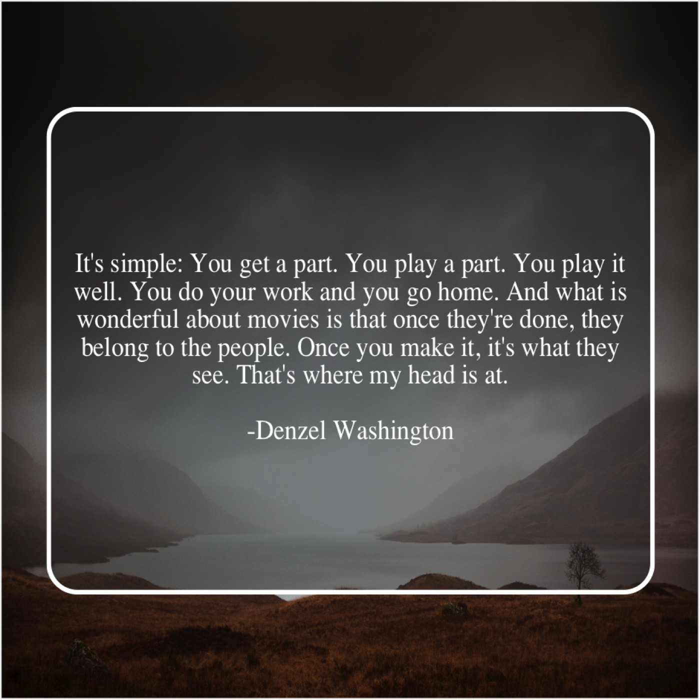 “It’s simple: You get a part. You play a part. You play it well. You do your work and you go home. And what is wonderful about movies is that once they’re done, they belong to the people. Once you make it, it’s what they see. That’s where my head is at.”
