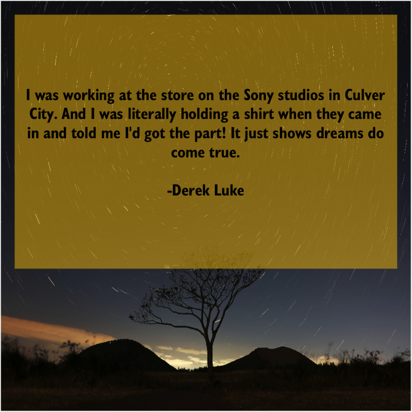 Derek Luke Derek Luke – I was working at the… October 12, 2019 admin “I was working at the store on the Sony studios in Culver City. And I was literally holding a shirt when they came in and told me I’d got the part! It just shows dreams do come true.”-Derek Luke