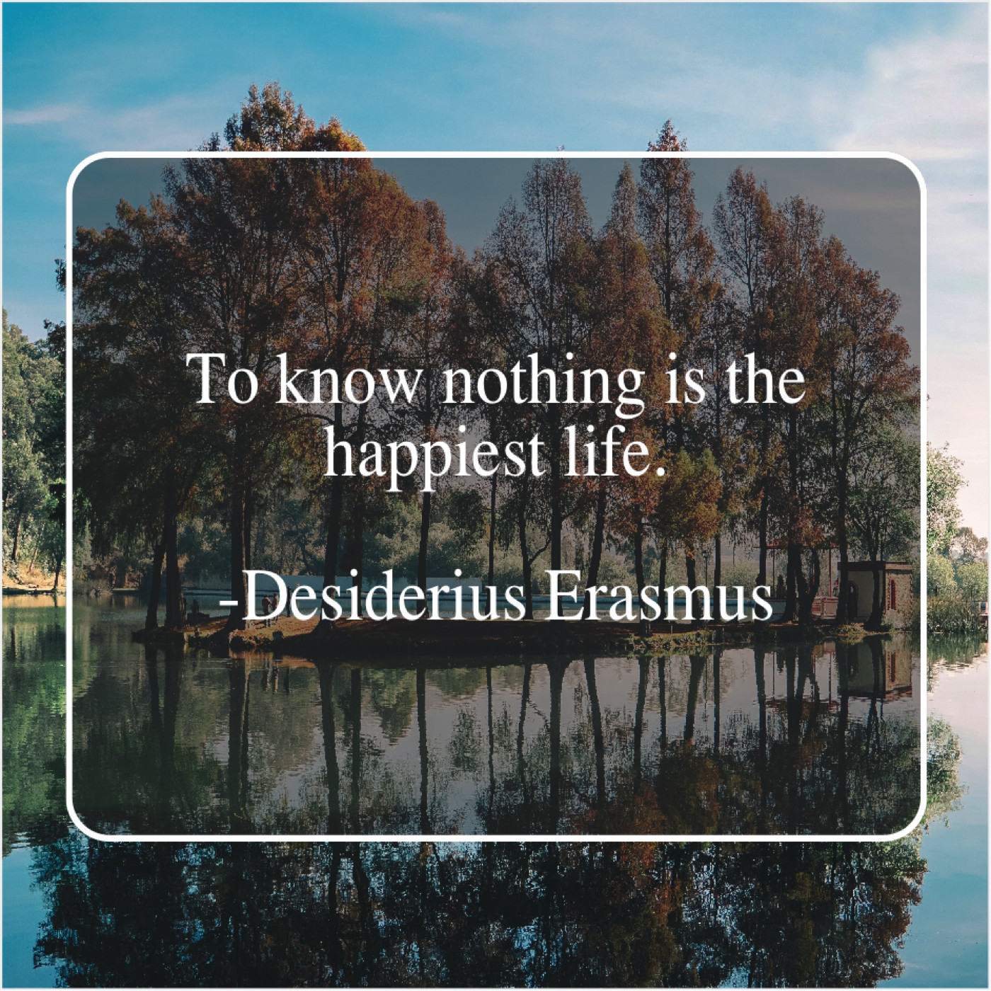 Desiderius Erasmus Desiderius Erasmus – To know nothing is the… November 21, 2018 admin “To know nothing is the happiest life.”-Desiderius Erasmus