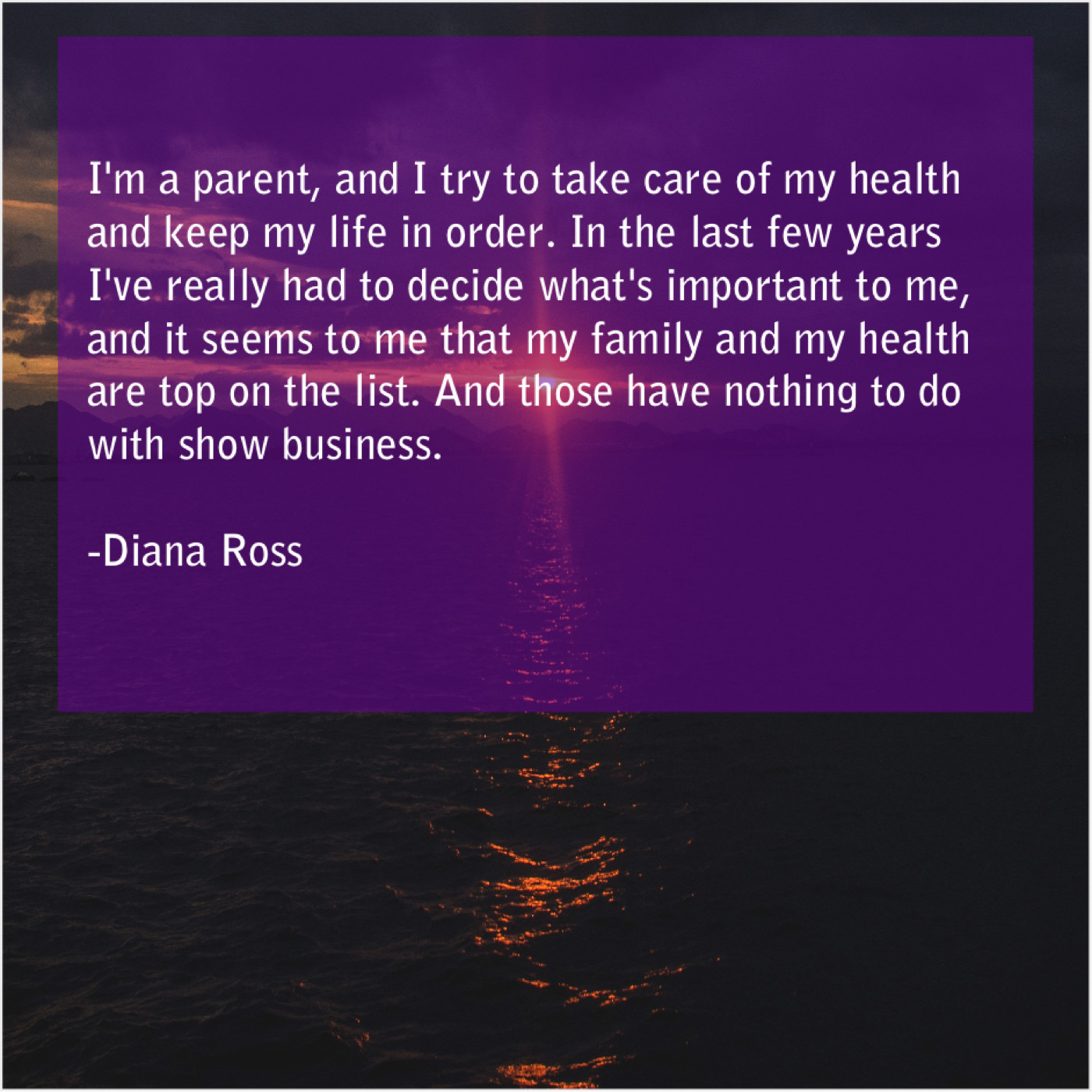 “I’m a parent, and I try to take care of my health and keep my life in order. In the last few years I’ve really had to decide what’s important to me, and it seems to me that my family and my health are top on the list. And those have nothing to do with show business.”