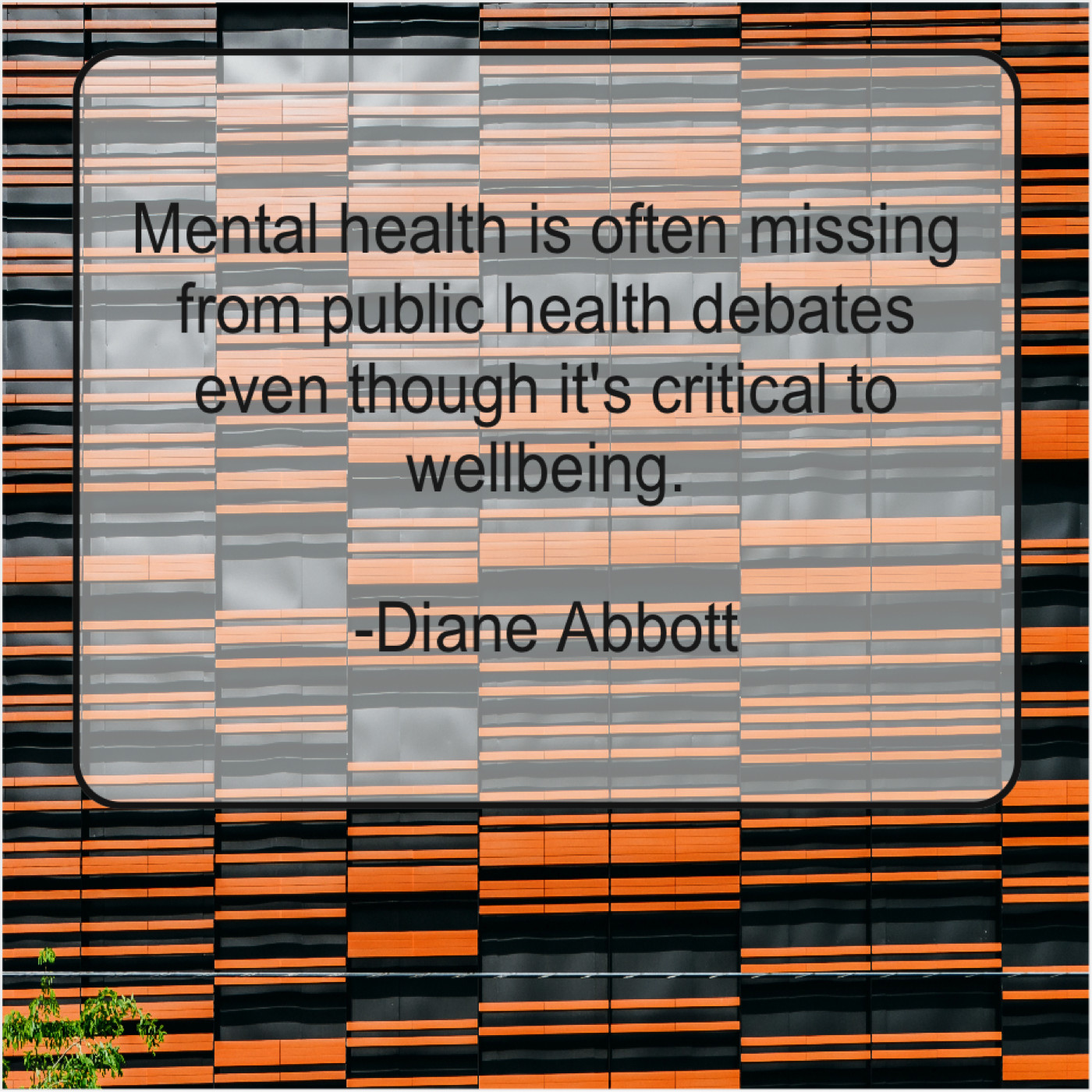 Diane Abbott Diane Abbott – Mental health is often missing… September 11, 2019 admin “Mental health is often missing from public health debates even though it’s critical to wellbeing.”-Diane Abbott
