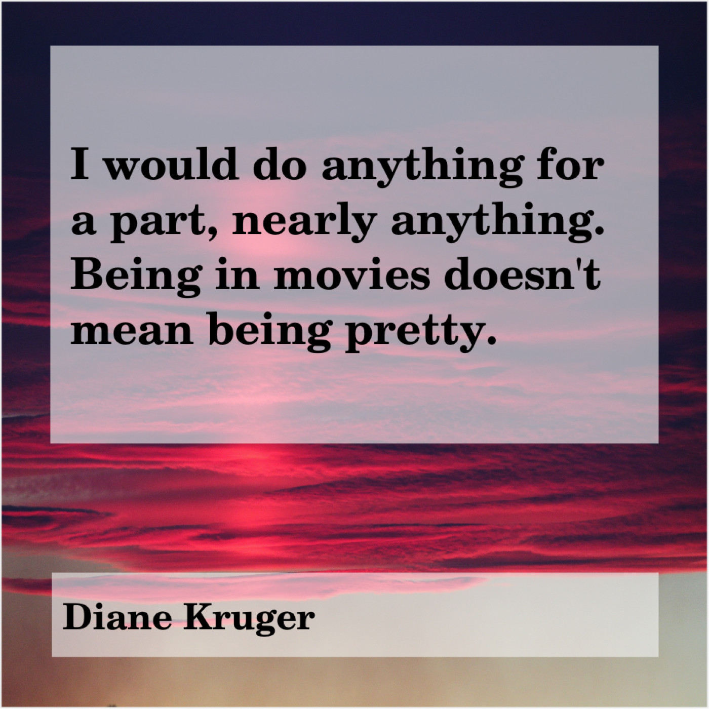 Diane Kruger Diane Kruger – I would do anything for… August 5, 2019 admin “I would do anything for a part, nearly anything. Being in movies doesn’t mean being pretty.”-Diane Kruger