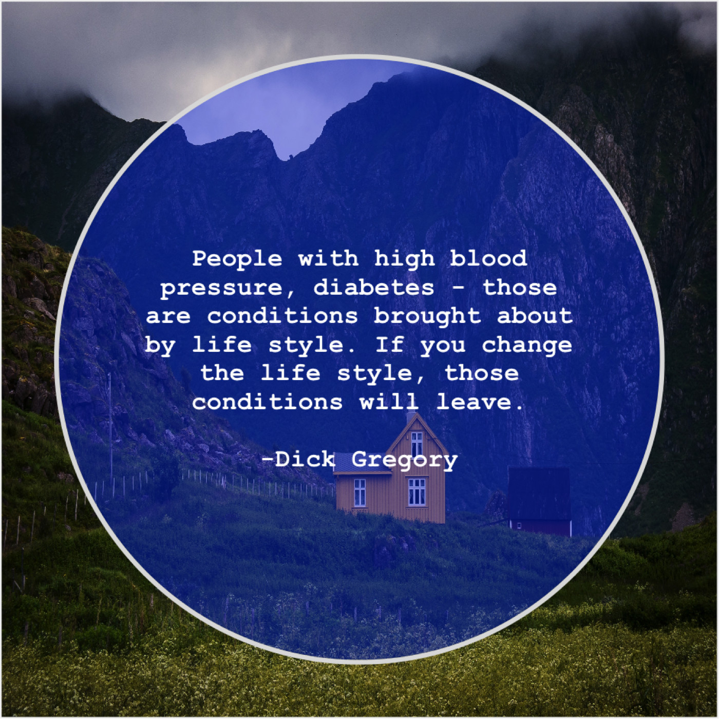 Dick Gregory Dick Gregory – People with high blood pressure… July 6, 2019 admin “People with high blood pressure, diabetes – those are conditions brought about by life style. If you change the life style, those conditions will leave.”-Dick Gregory