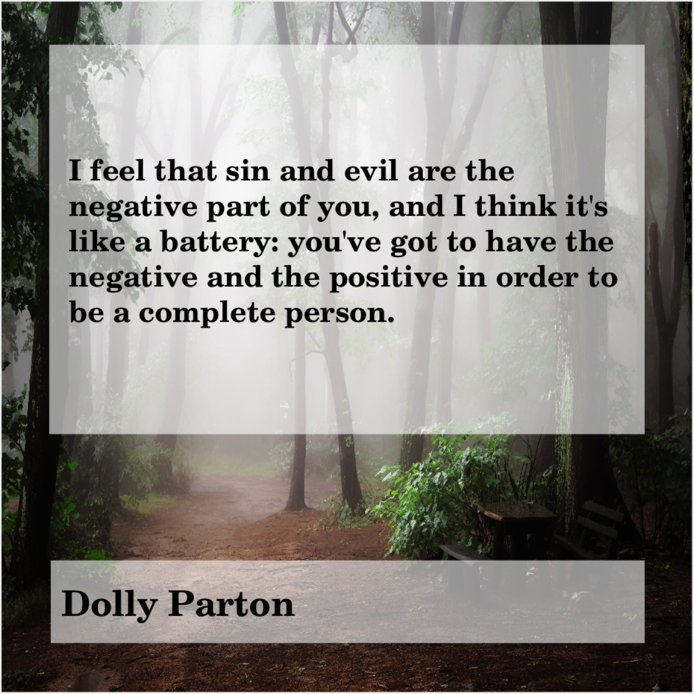 Dolly Parton Dolly Parton – I feel that sin and… March 7, 2019 admin “I feel that sin and evil are the negative part of you, and I think it’s like a battery: you’ve got to have the negative and the positive in order to be a complete person.”-Dolly Parton