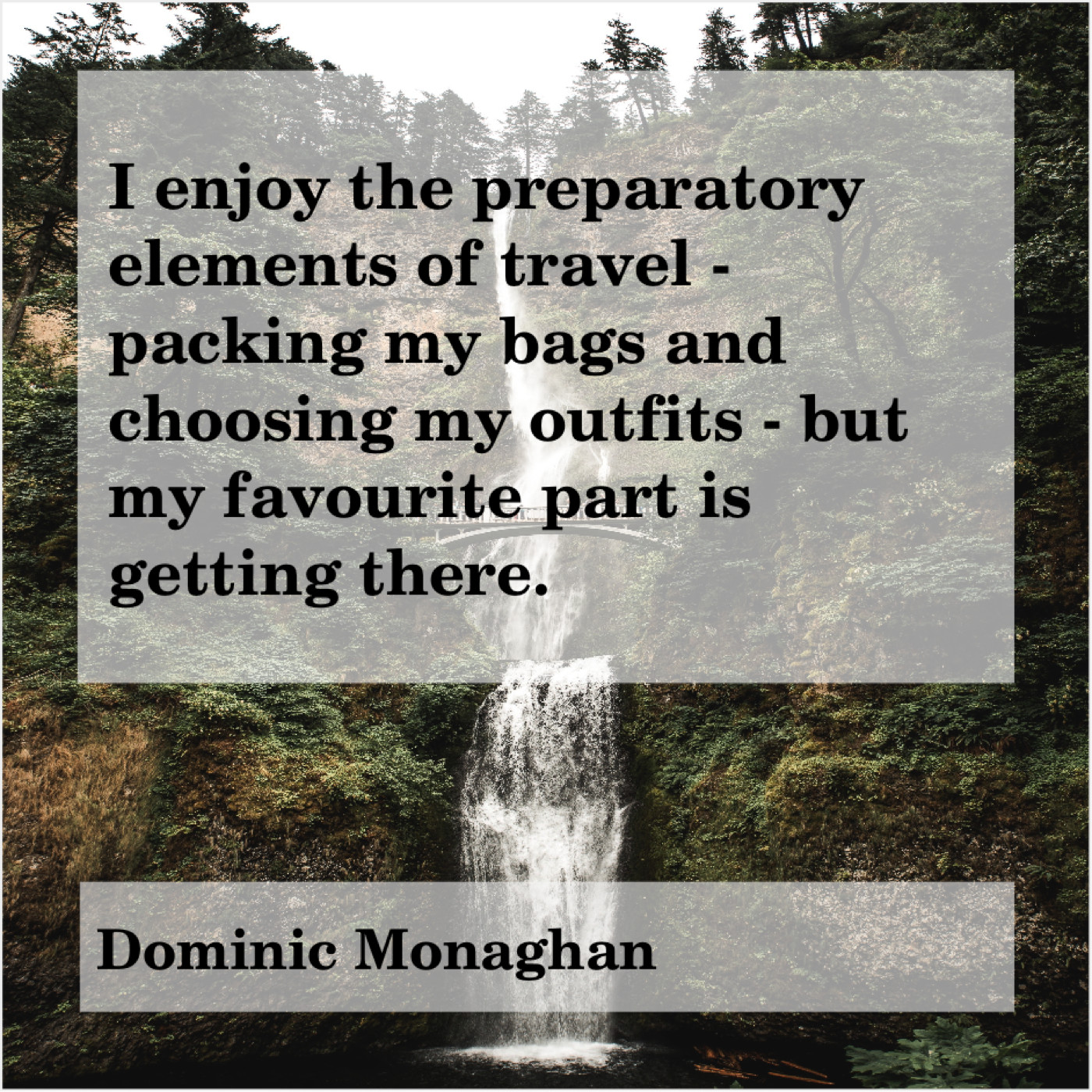 Dominic Monaghan Dominic Monaghan – I enjoy the preparatory elements… November 17, 2018 admin “I enjoy the preparatory elements of travel – packing my bags and choosing my outfits – but my favourite part is getting there.”-Dominic Monaghan