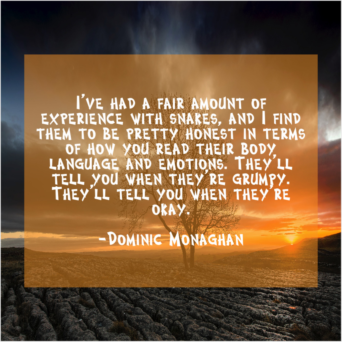 Dominic Monaghan Dominic Monaghan – I’ve had a fair amount… September 3, 2019 admin “I’ve had a fair amount of experience with snakes, and I find them to be pretty honest in terms of how you read their body language and emotions. They’ll tell you when they’re grumpy. They’ll tell you when they’re okay.”-Dominic Monaghan