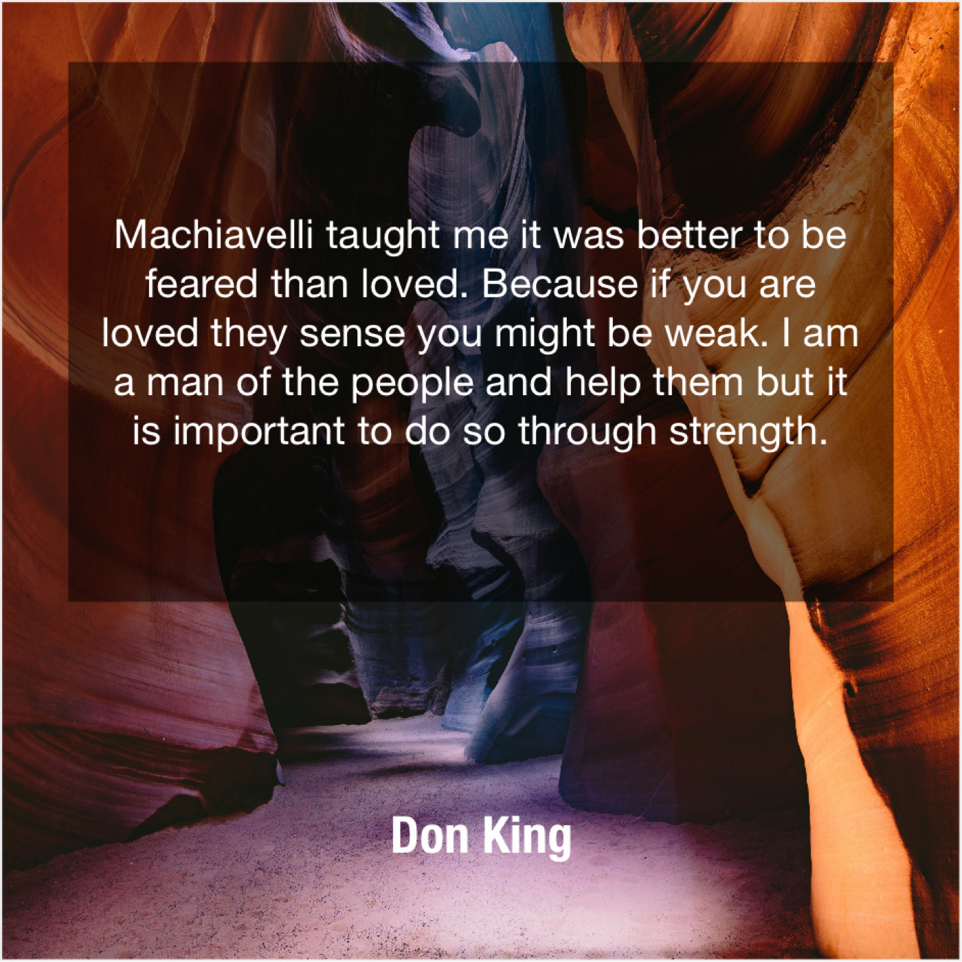 “Machiavelli taught me it was better to be feared than loved. Because if you are loved they sense you might be weak. I am a man of the people and help them but it is important to do so through strength.”