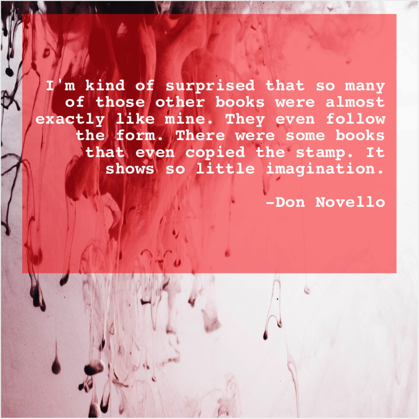 “I’m kind of surprised that so many of those other books were almost exactly like mine. They even follow the form. There were some books that even copied the stamp. It shows so little imagination.”