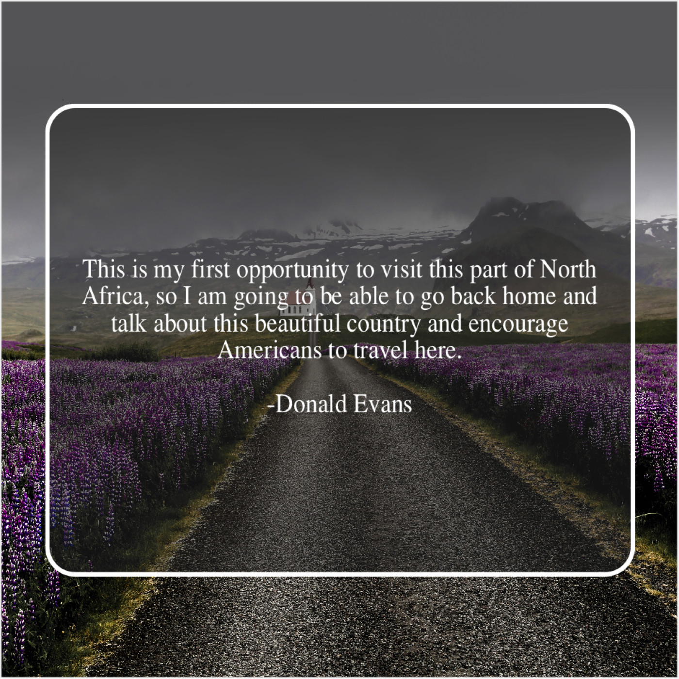 Donald Evans Donald Evans – This is my first opportunity… January 5, 2019 admin “This is my first opportunity to visit this part of North Africa, so I am going to be able to go back home and talk about this beautiful country and encourage Americans to travel here.”-Donald Evans