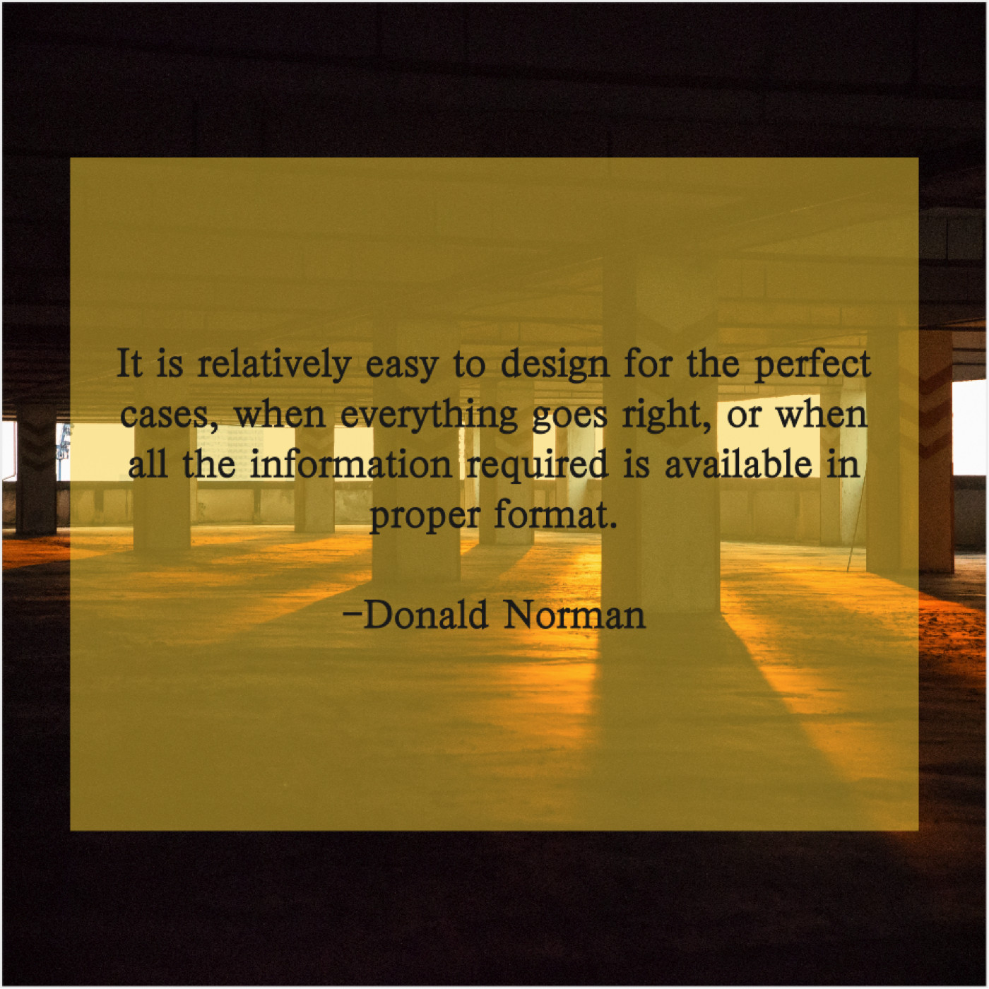 Donald Norman Donald Norman – It is relatively easy to… February 15, 2019 admin “It is relatively easy to design for the perfect cases, when everything goes right, or when all the information required is available in proper format.”-Donald Norman