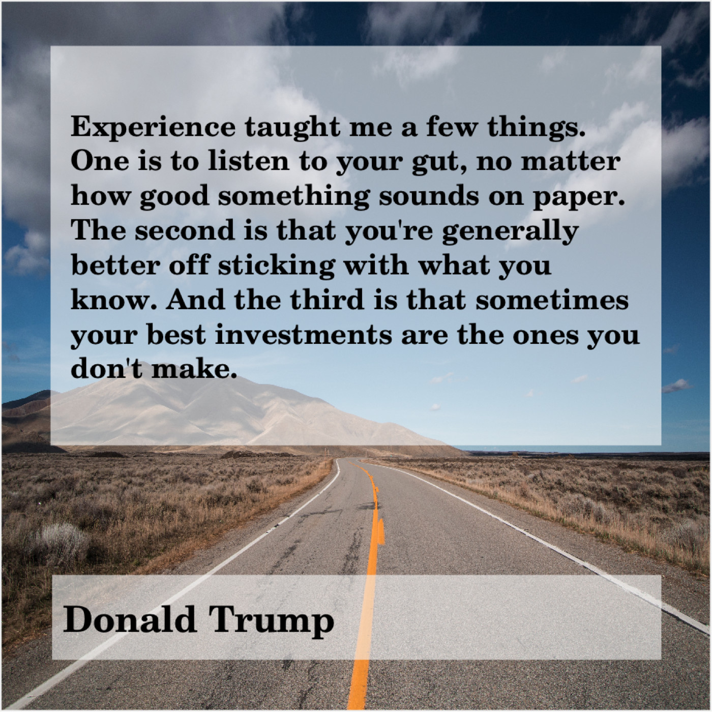 “Experience taught me a few things. One is to listen to your gut, no matter how good something sounds on paper. The second is that you’re generally better off sticking with what you know. And the third is that sometimes your best investments are the ones you don’t make.”