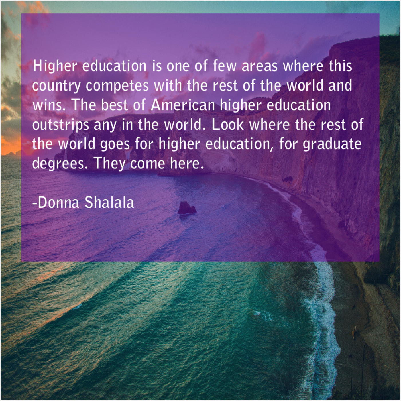“Higher education is one of few areas where this country competes with the rest of the world and wins. The best of American higher education outstrips any in the world. Look where the rest of the world goes for higher education, for graduate degrees. They come here.”
