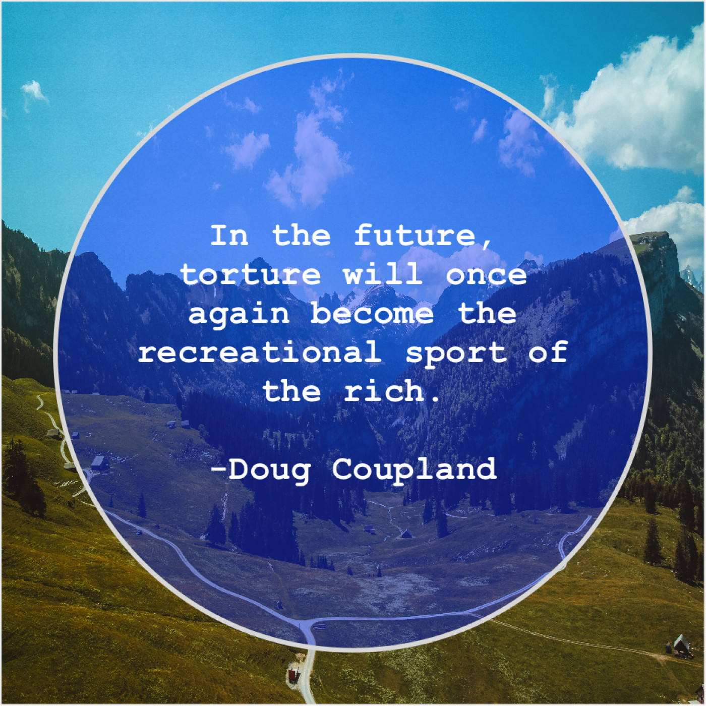 Doug Coupland Doug Coupland – In the future, torture will… July 20, 2019 admin “In the future, torture will once again become the recreational sport of the rich.”-Doug Coupland