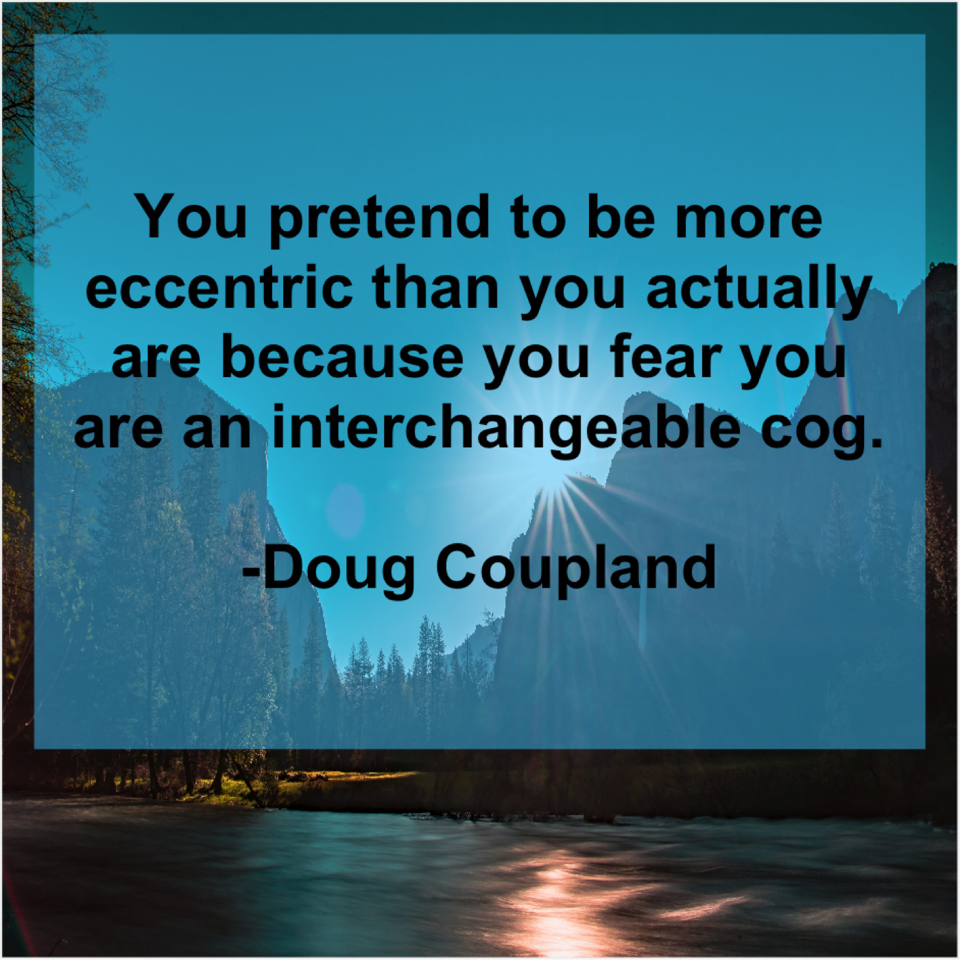 Doug Coupland Doug Coupland – You pretend to be more… November 12, 2018 admin “You pretend to be more eccentric than you actually are because you fear you are an interchangeable cog.”-Doug Coupland