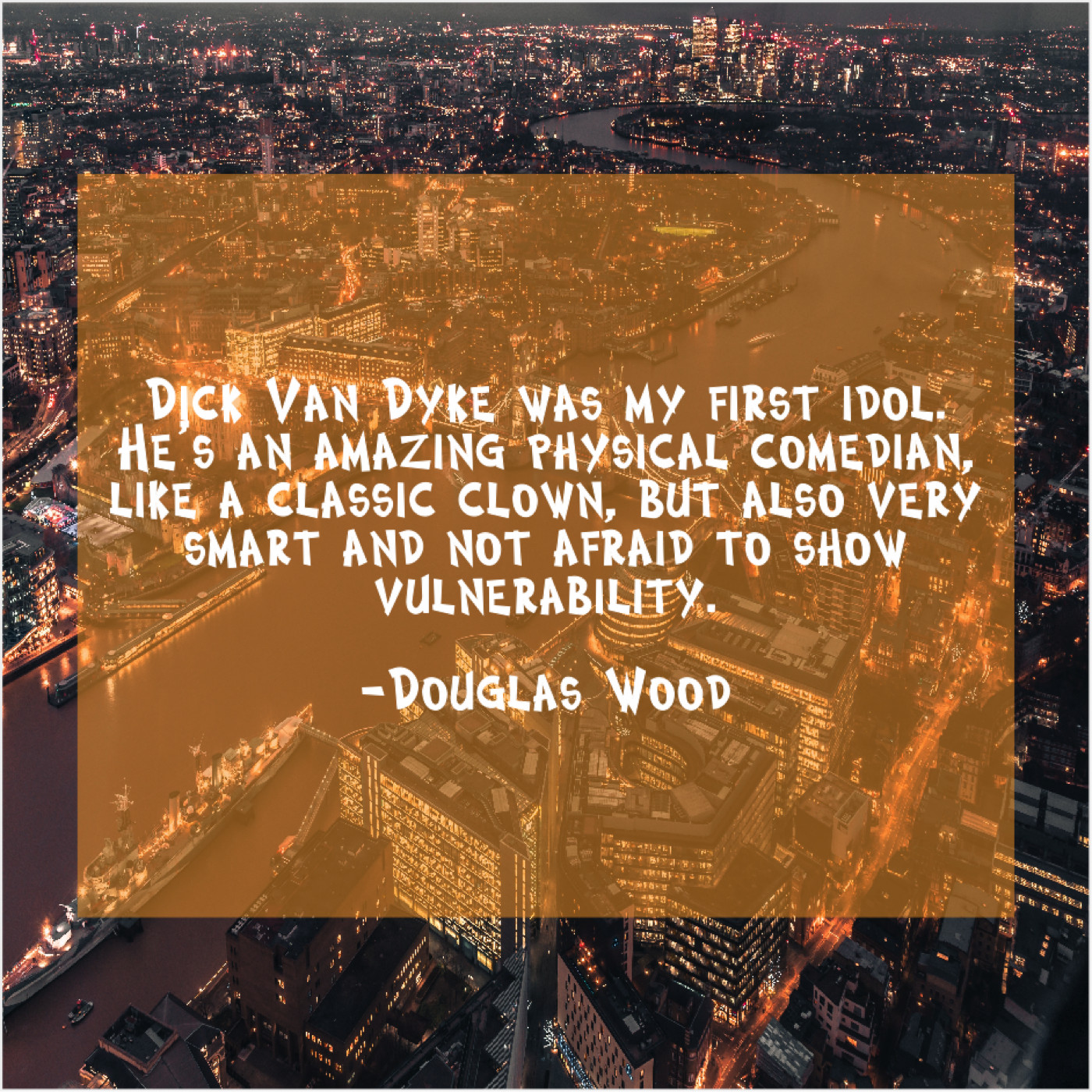 Douglas Wood Douglas Wood – Dick Van Dyke was my… November 22, 2018 admin “Dick Van Dyke was my first idol. He’s an amazing physical comedian, like a classic clown, but also very smart and not afraid to show vulnerability.”-Douglas Wood