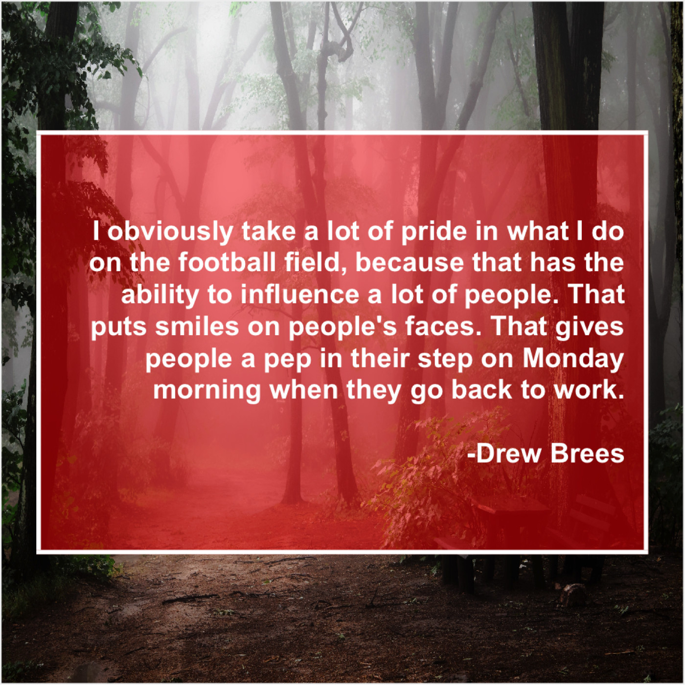 “I obviously take a lot of pride in what I do on the football field, because that has the ability to influence a lot of people. That puts smiles on people’s faces. That gives people a pep in their step on Monday morning when they go back to work.”