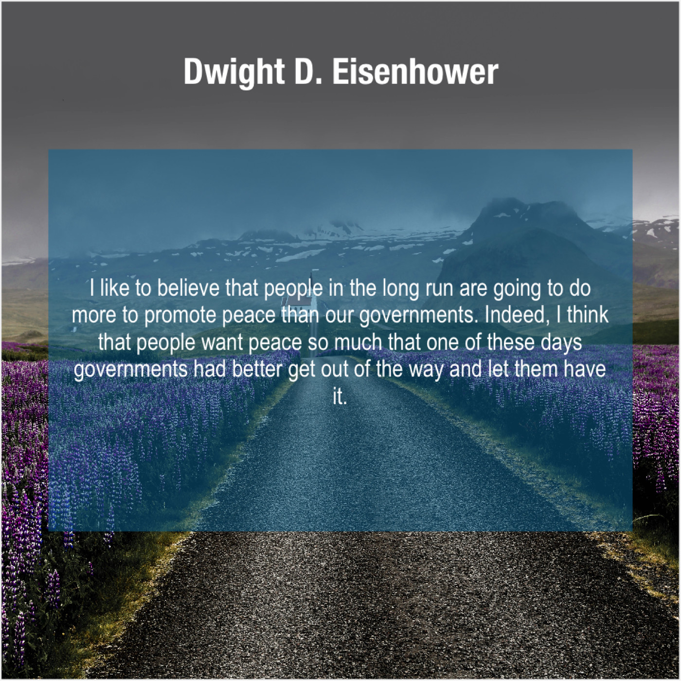 “I like to believe that people in the long run are going to do more to promote peace than our governments. Indeed, I think that people want peace so much that one of these days governments had better get out of the way and let them have it.”