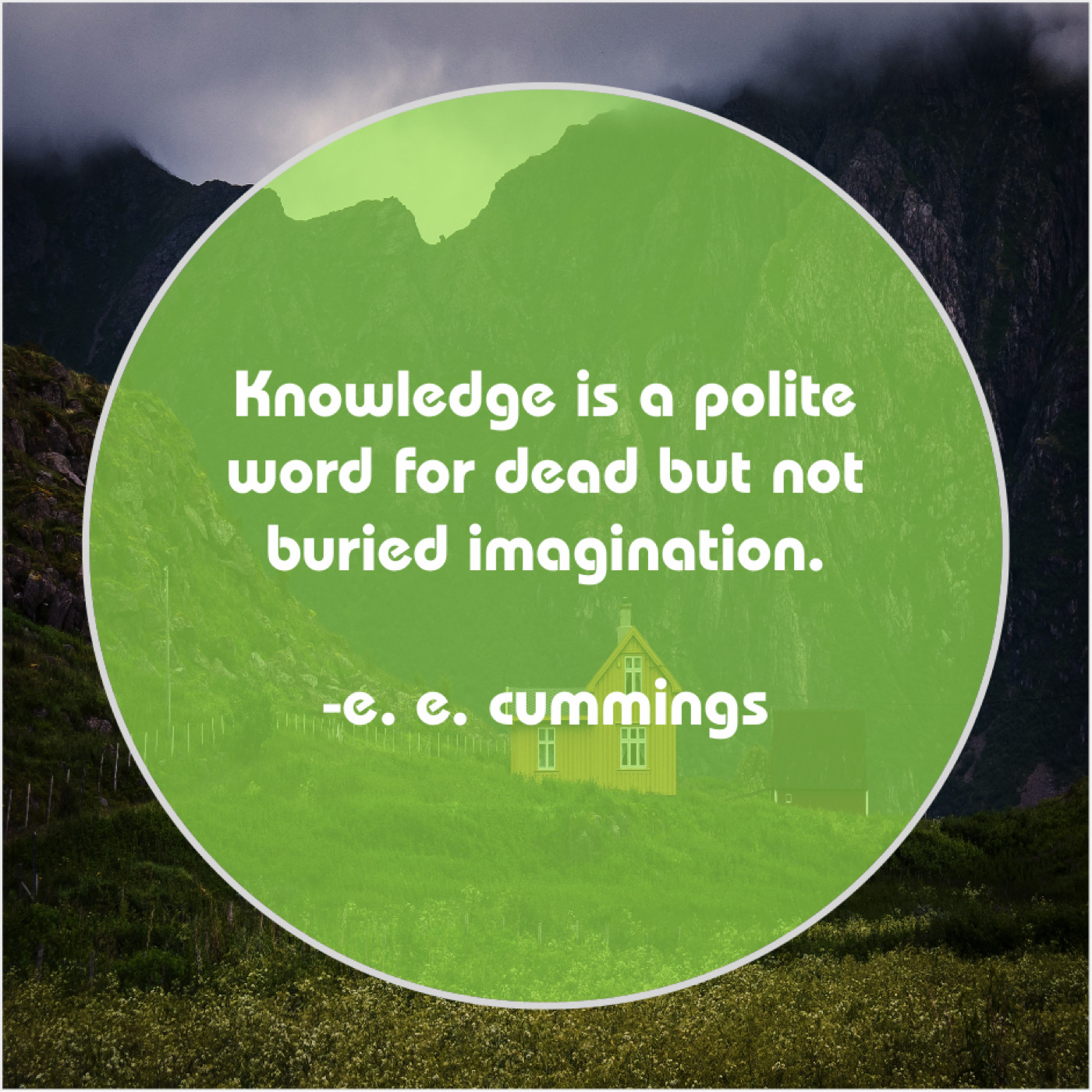 e. e. cummings e. e. cummings – Knowledge is a polite word… March 23, 2019 admin “Knowledge is a polite word for dead but not buried imagination.”-e. e. cummings