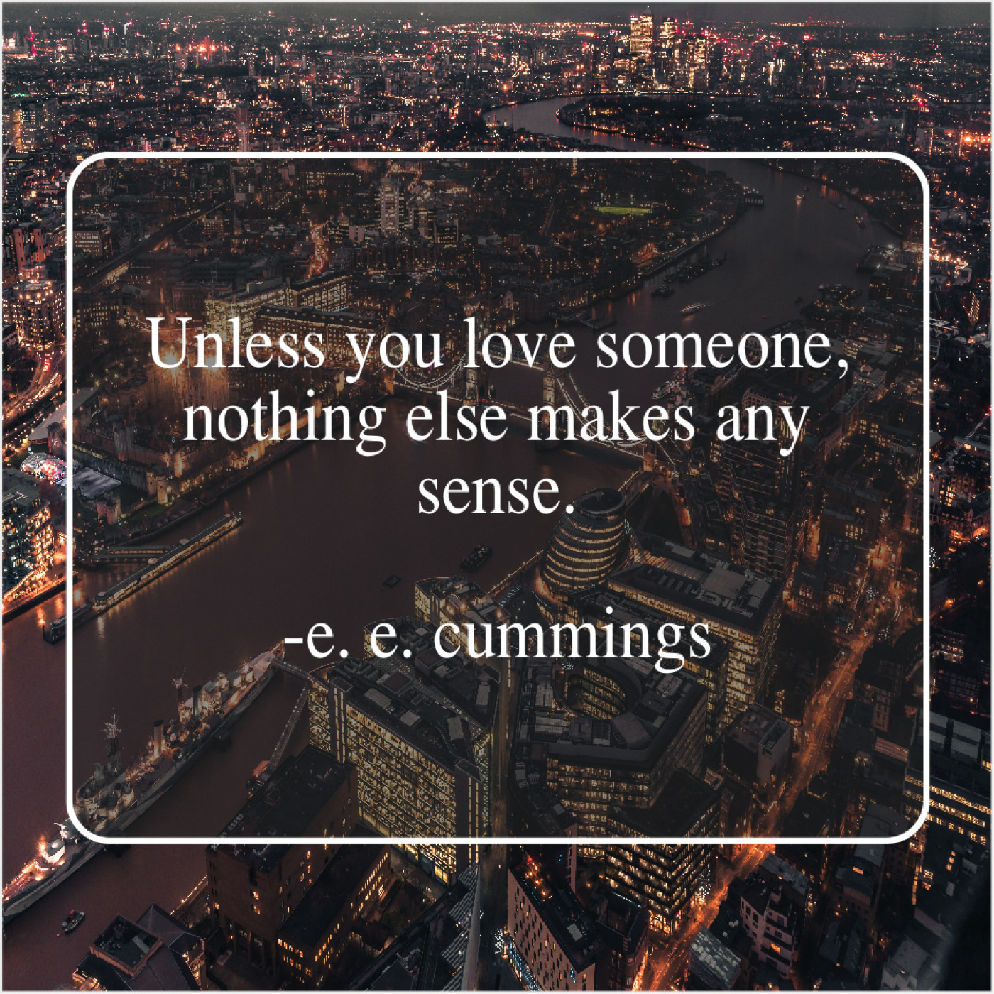 e. e. cummings e. e. cummings – Unless you love someone, nothing… April 26, 2019 admin “Unless you love someone, nothing else makes any sense.”-e. e. cummings