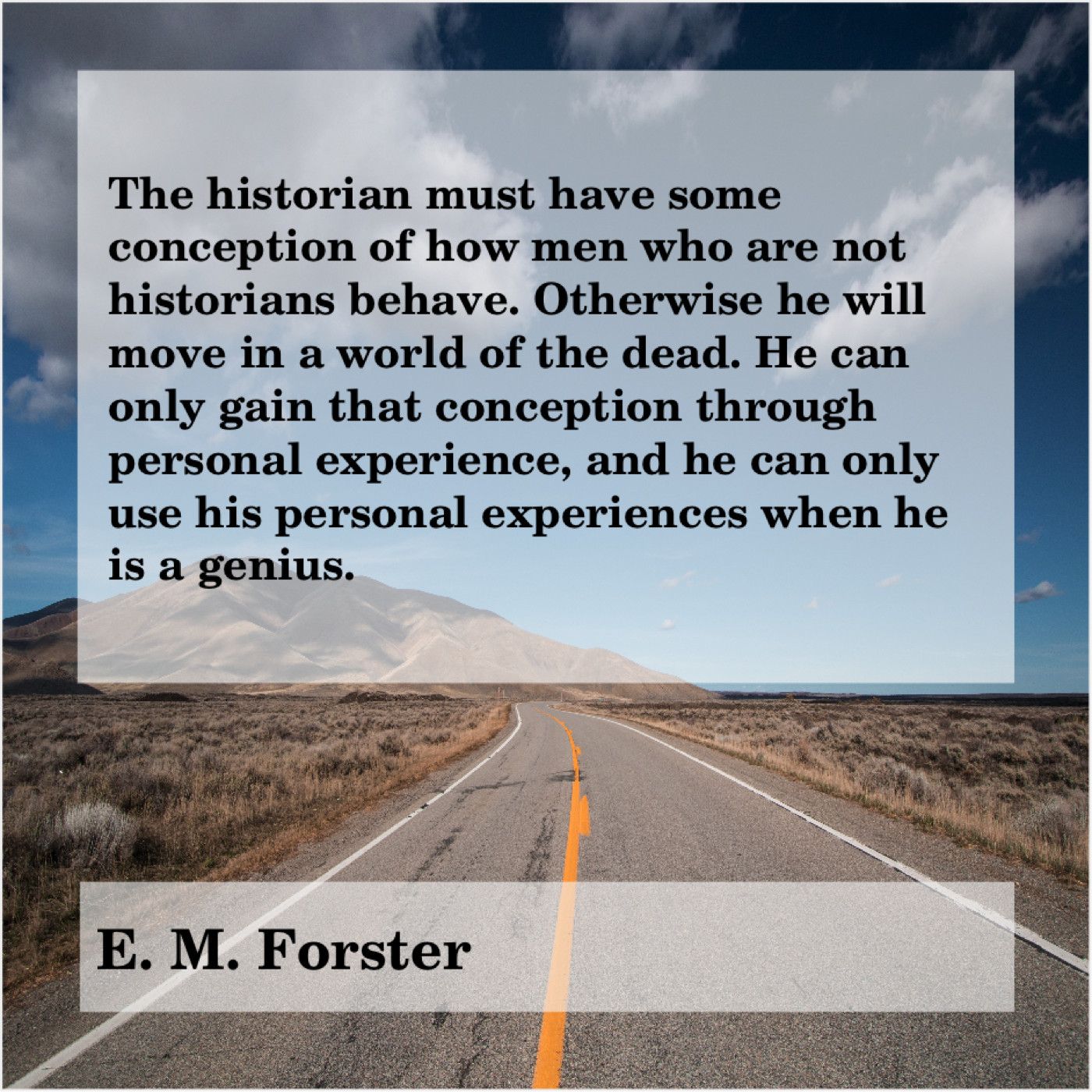 “The historian must have some conception of how men who are not historians behave. Otherwise he will move in a world of the dead. He can only gain that conception through personal experience, and he can only use his personal experiences when he is a genius.”