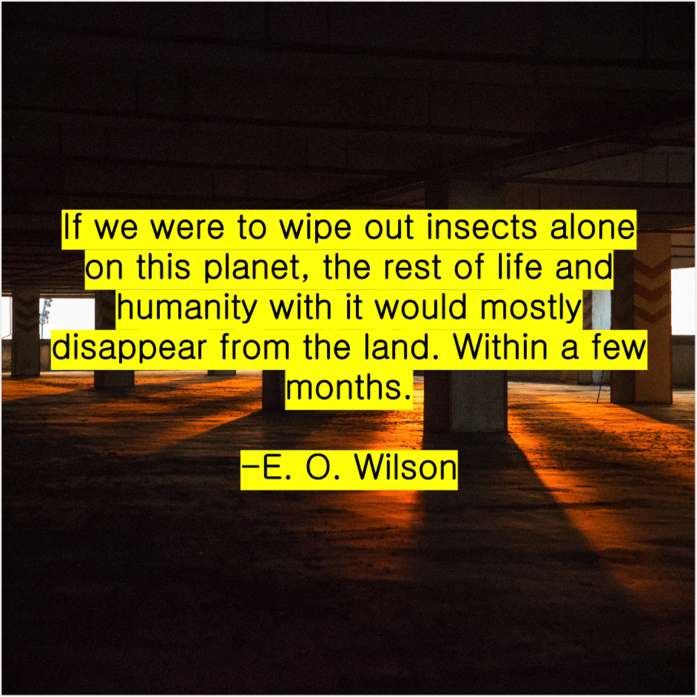 E. O. Wilson E. O. Wilson – If we were to wipe… May 2, 2019 admin “If we were to wipe out insects alone on this planet, the rest of life and humanity with it would mostly disappear from the land. Within a few months.”-E. O. Wilson