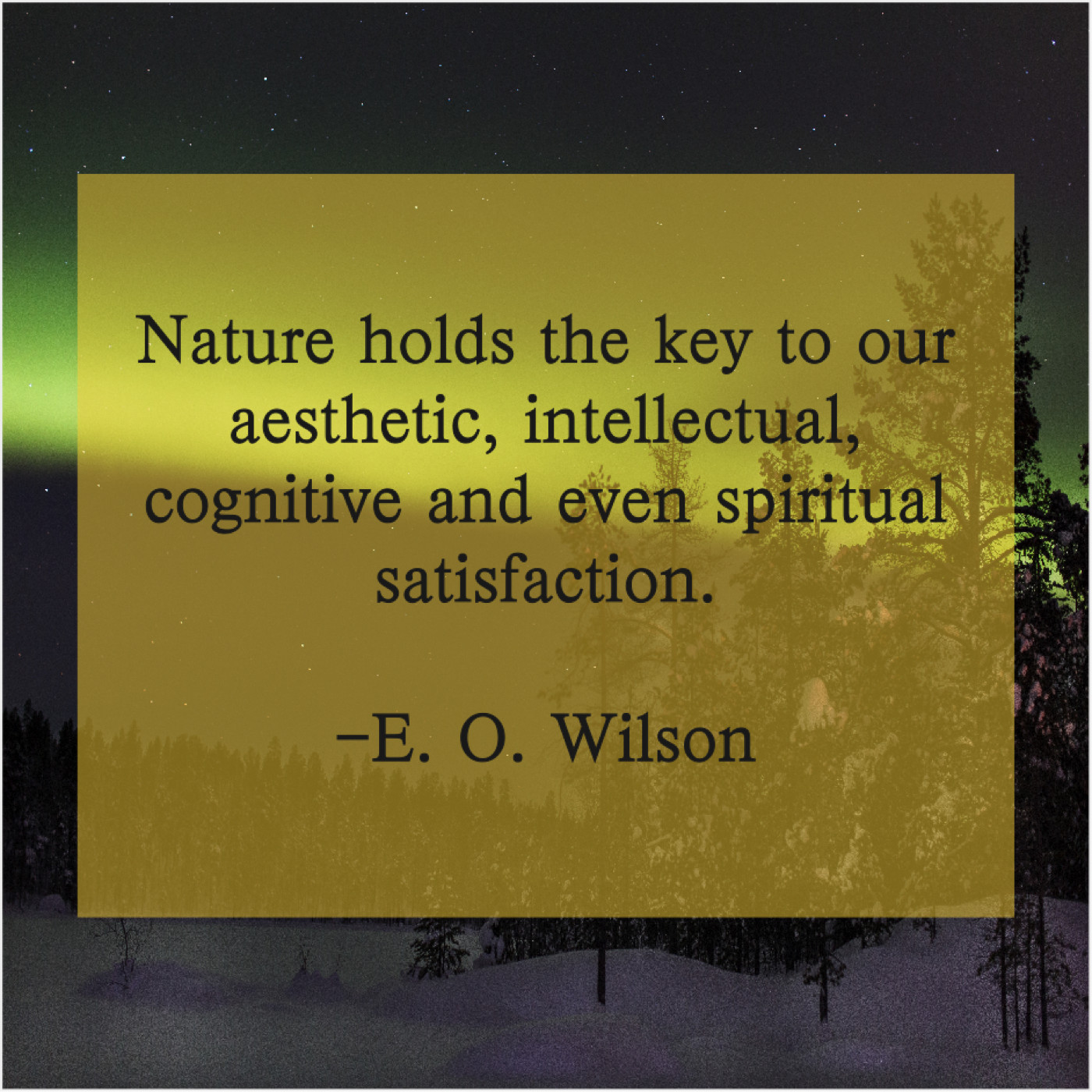 E. O. Wilson E. O. Wilson – Nature holds the key to… March 1, 2019 admin “Nature holds the key to our aesthetic, intellectual, cognitive and even spiritual satisfaction.”-E. O. Wilson
