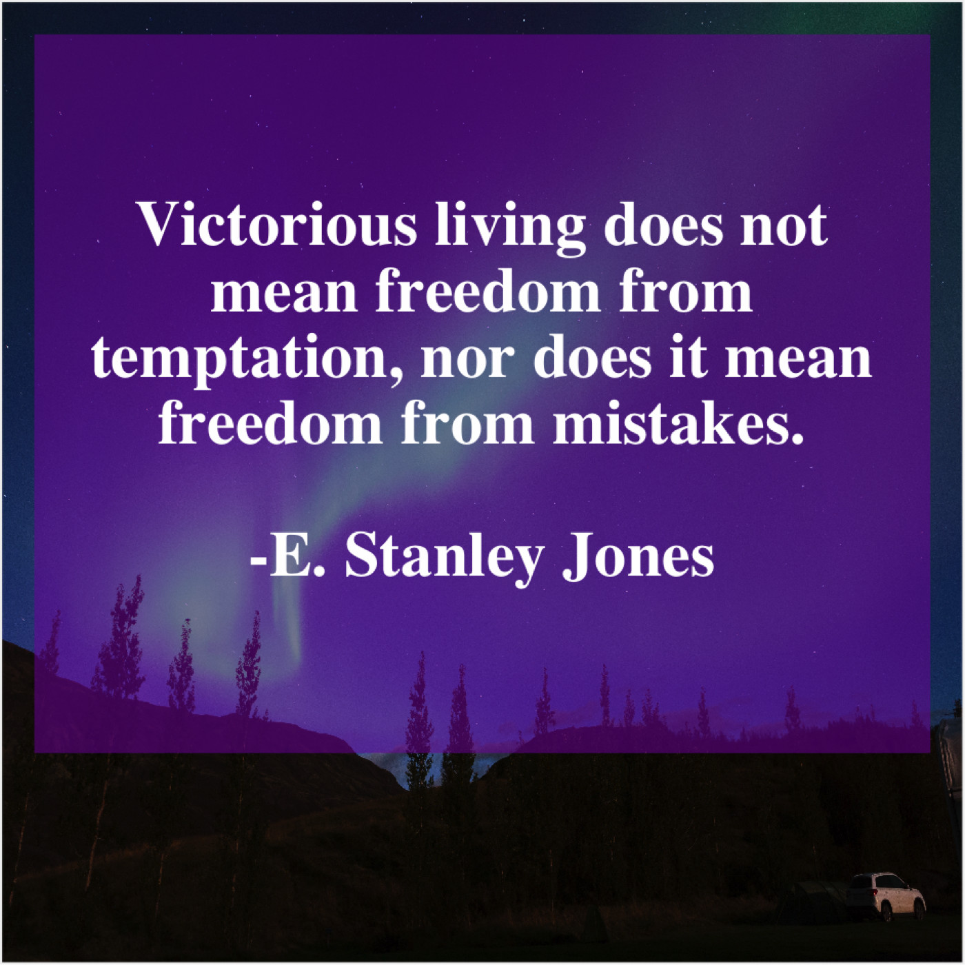 E. Stanley Jones E. Stanley Jones – Victorious living does not mean… January 18, 2019 admin “Victorious living does not mean freedom from temptation, nor does it mean freedom from mistakes.”-E. Stanley Jones