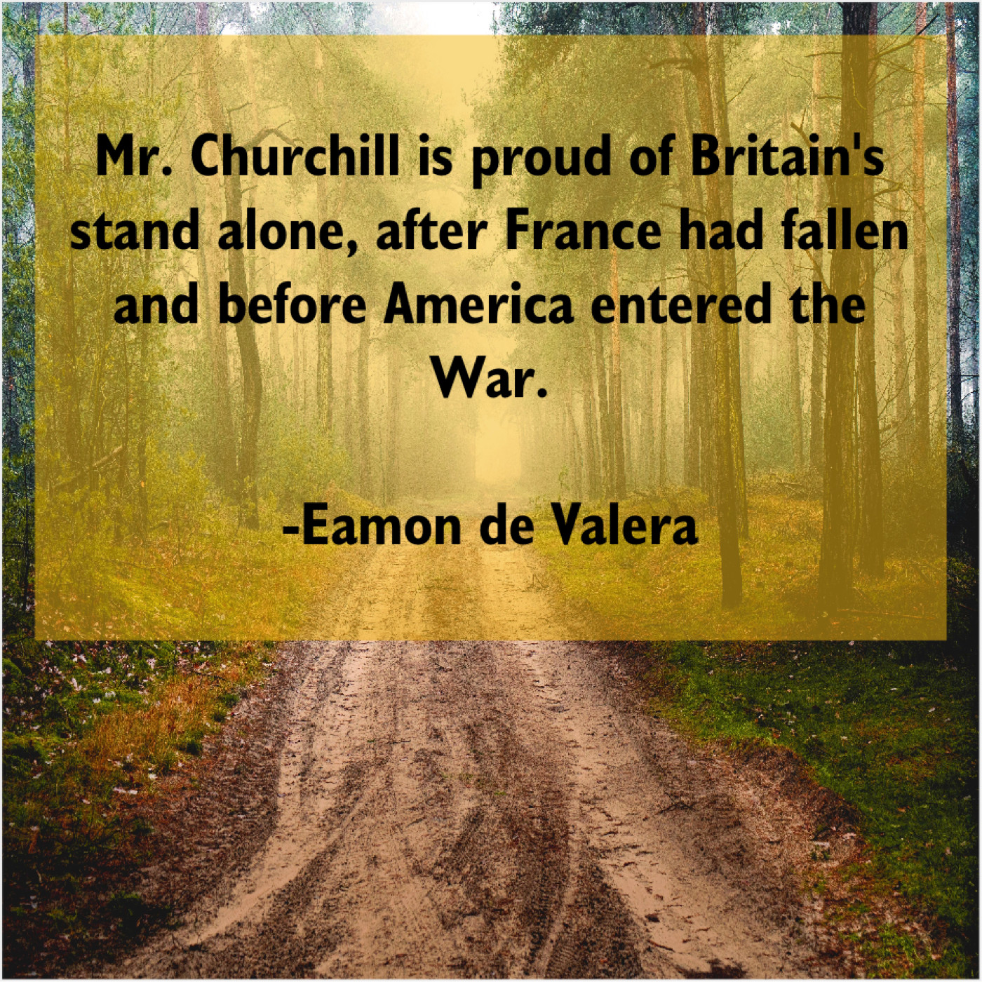 Eamon de Valera Eamon de Valera – Mr. Churchill is proud of… September 29, 2019 admin “Mr. Churchill is proud of Britain’s stand alone, after France had fallen and before America entered the War.”-Eamon de Valera