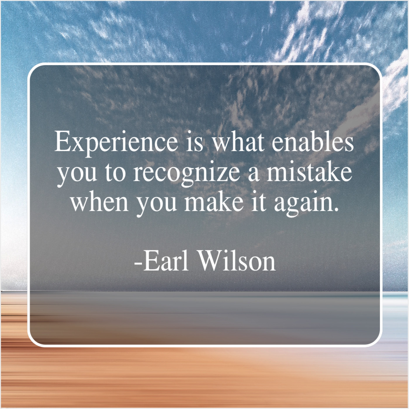 Earl Wilson Earl Wilson – Experience is what enables you… August 2, 2019 admin “Experience is what enables you to recognize a mistake when you make it again.”-Earl Wilson