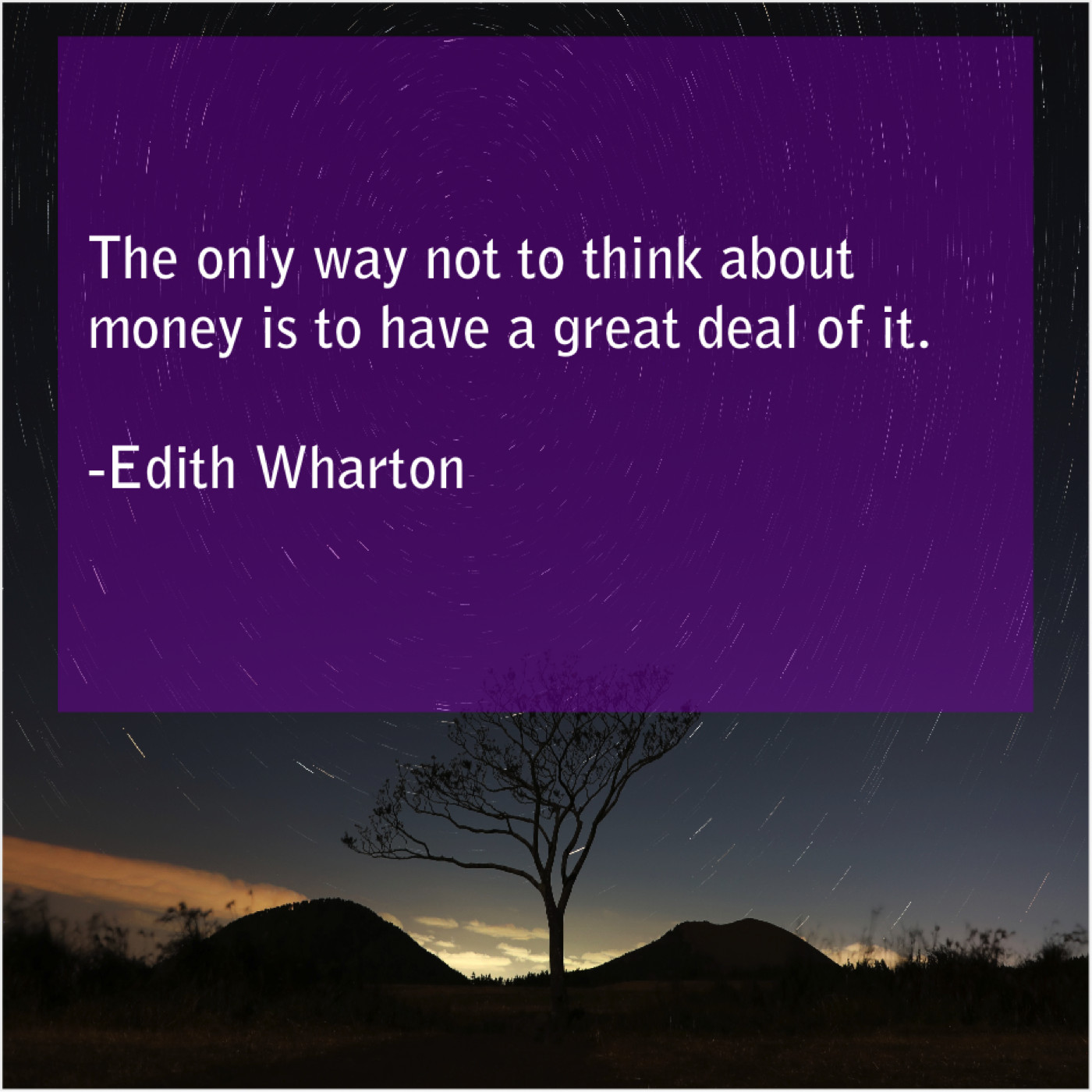 Edith Wharton Edith Wharton – The only way not to… July 8, 2019 admin “The only way not to think about money is to have a great deal of it.”-Edith Wharton