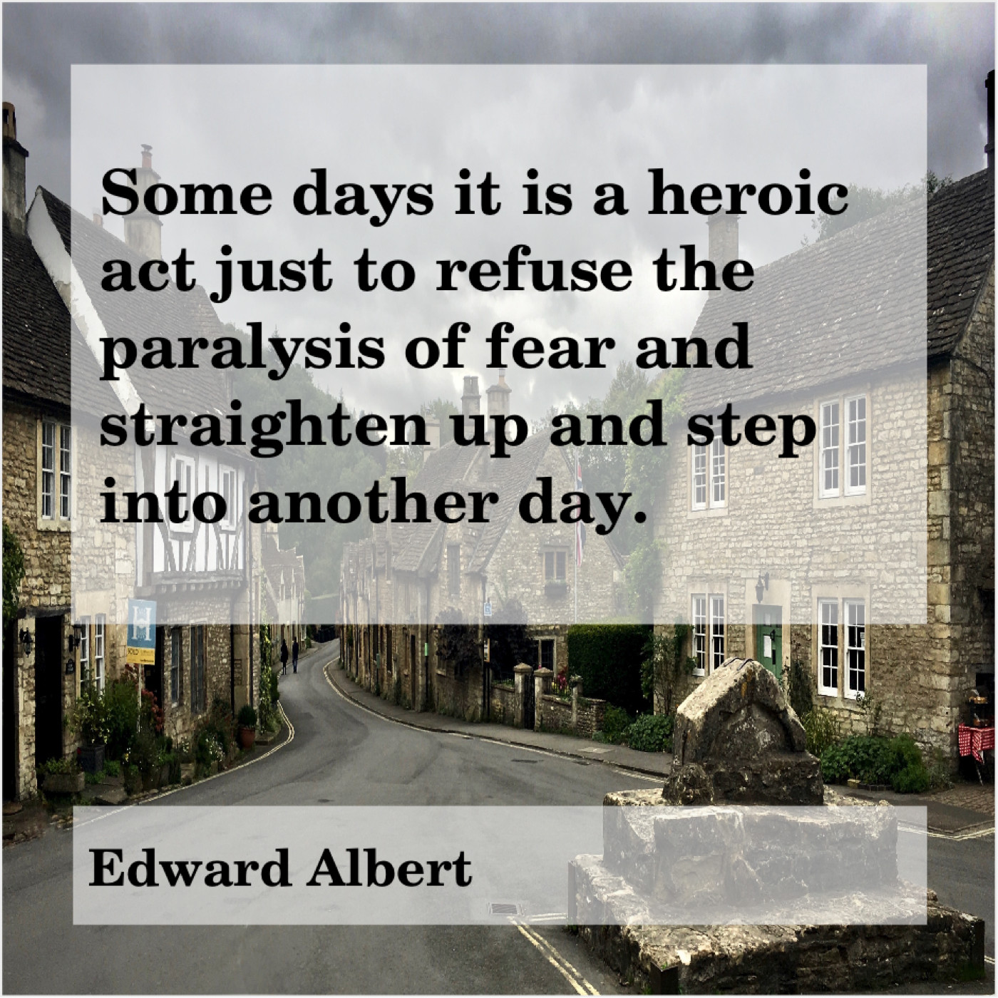 Edward Albert Edward Albert – Some days it is a… January 15, 2019 admin “Some days it is a heroic act just to refuse the paralysis of fear and straighten up and step into another day.”-Edward Albert