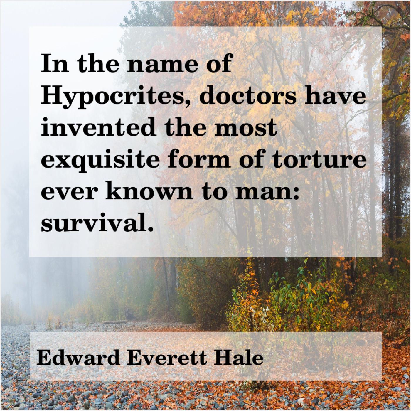 Edward Everett Hale Edward Everett Hale – In the name of Hypocrites… January 11, 2019 admin “In the name of Hypocrites, doctors have invented the most exquisite form of torture ever known to man: survival.”-Edward Everett Hale