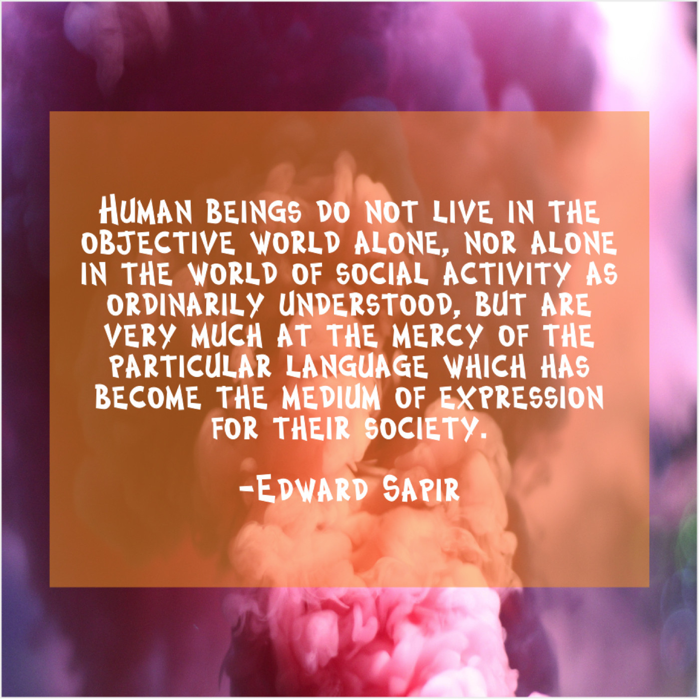 “Human beings do not live in the objective world alone, nor alone in the world of social activity as ordinarily understood, but are very much at the mercy of the particular language which has become the medium of expression for their society.”