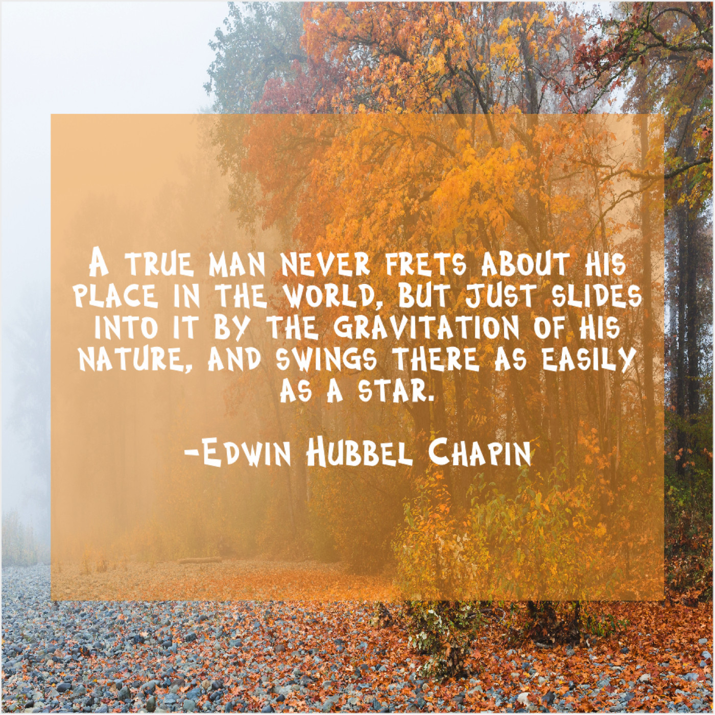 Edwin Hubbel Chapin Edwin Hubbel Chapin – A true man never frets… February 16, 2019 admin “A true man never frets about his place in the world, but just slides into it by the gravitation of his nature, and swings there as easily as a star.”-Edwin Hubbel Chapin