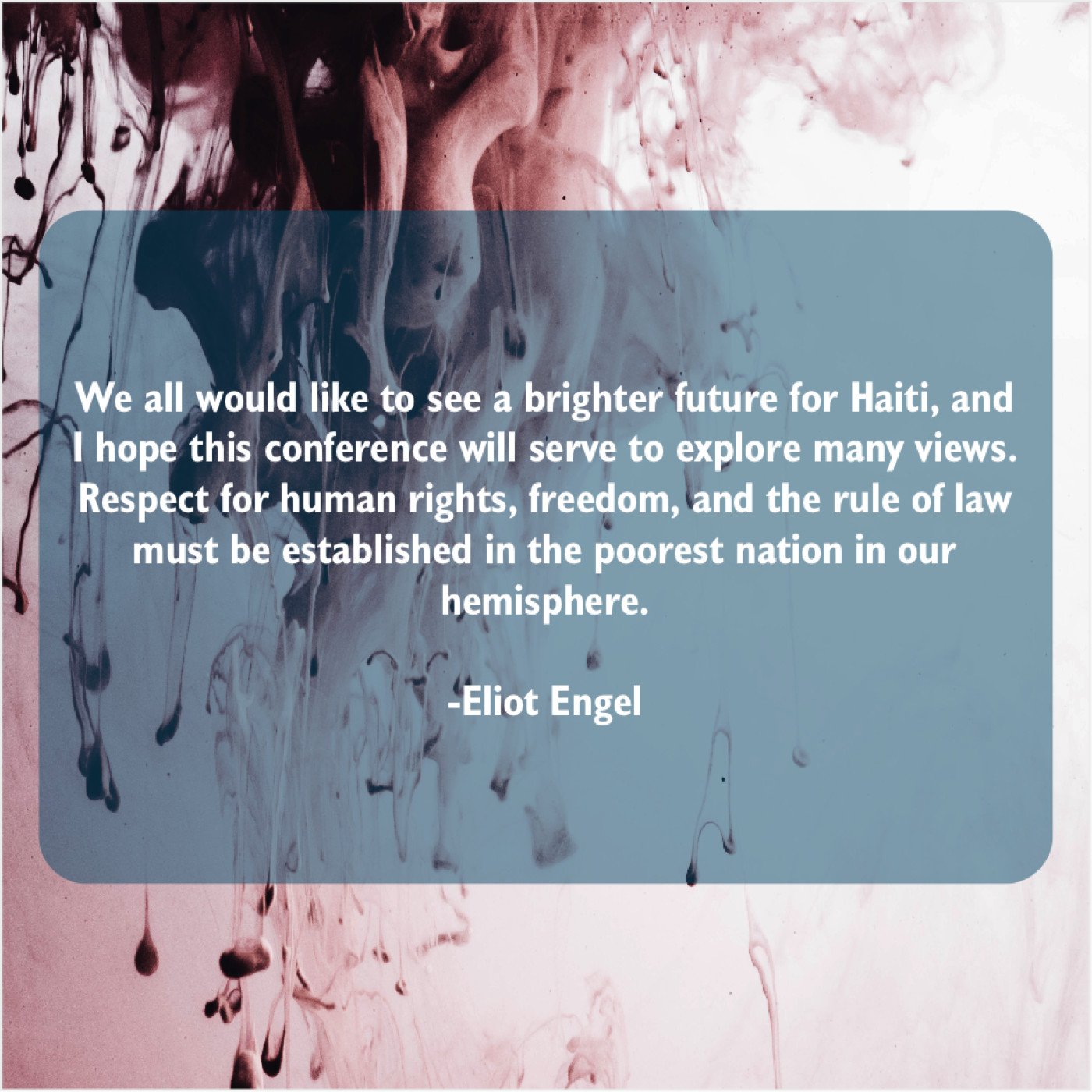 Eliot Engel Eliot Engel – We all would like to… February 28, 2019 admin “We all would like to see a brighter future for Haiti, and I hope this conference will serve to explore many views. Respect for human rights, freedom, and the rule of law must be established in the poorest nation in our hemisphere.”-Eliot Engel