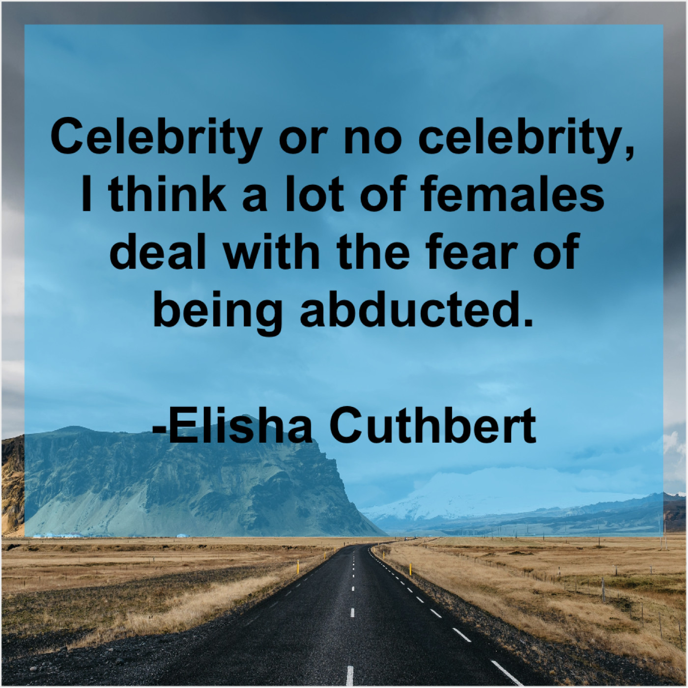 Elisha Cuthbert Elisha Cuthbert – Celebrity or no celebrity, I… March 25, 2019 admin “Celebrity or no celebrity, I think a lot of females deal with the fear of being abducted.”-Elisha Cuthbert