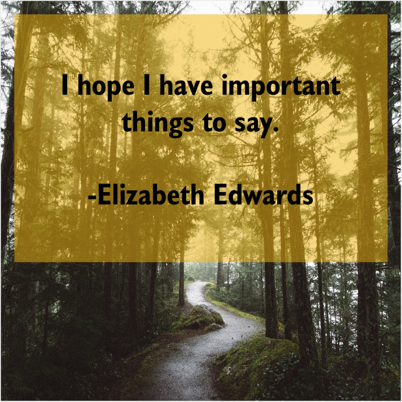 Elizabeth Edwards Elizabeth Edwards – I hope I have important… May 30, 2019 admin “I hope I have important things to say.”-Elizabeth Edwards