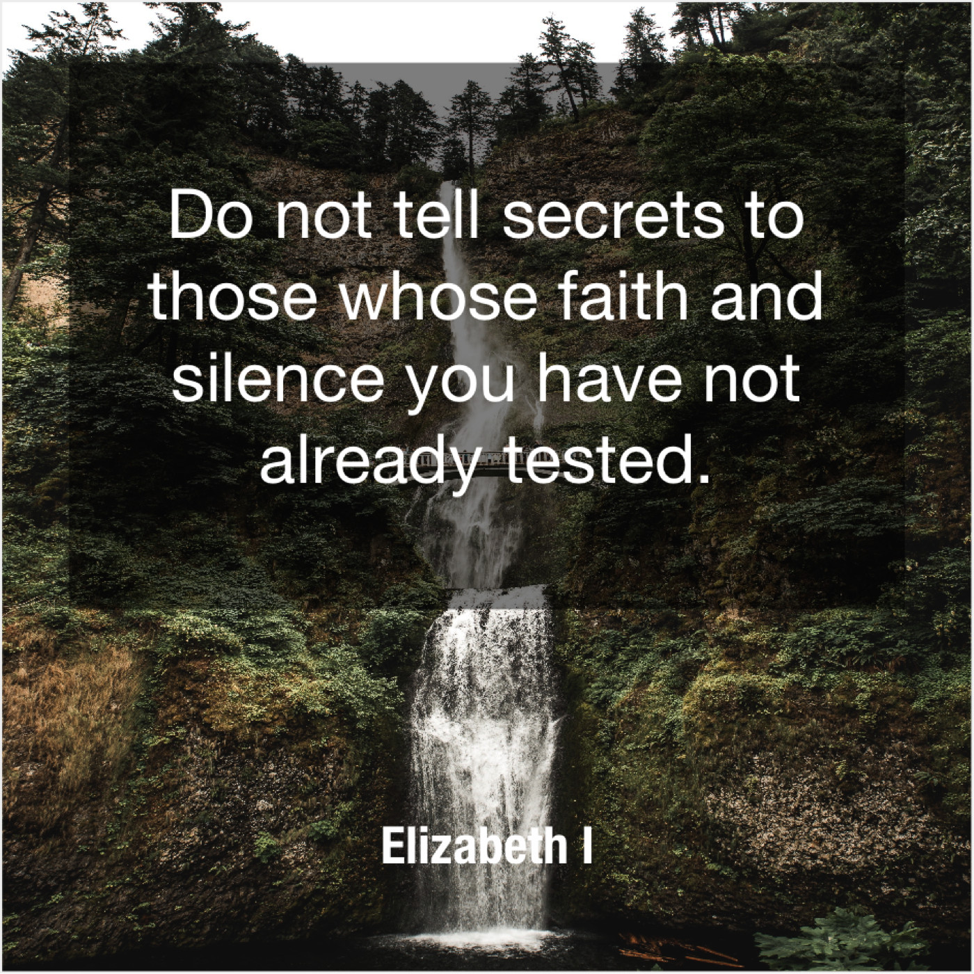 Elizabeth I Elizabeth I – Do not tell secrets to… July 24, 2019 admin “Do not tell secrets to those whose faith and silence you have not already tested.”-Elizabeth I