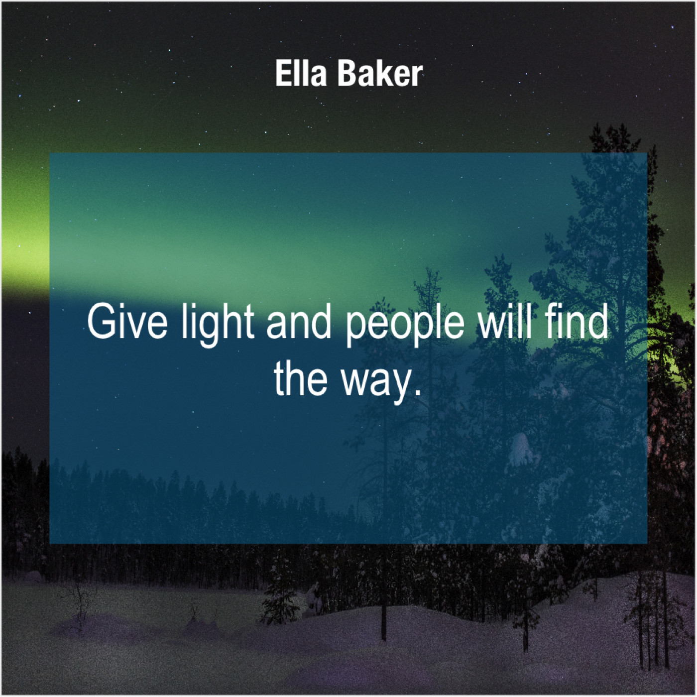 Ella Baker Ella Baker – Give light and people will… November 21, 2018 admin “Give light and people will find the way.”-Ella Baker