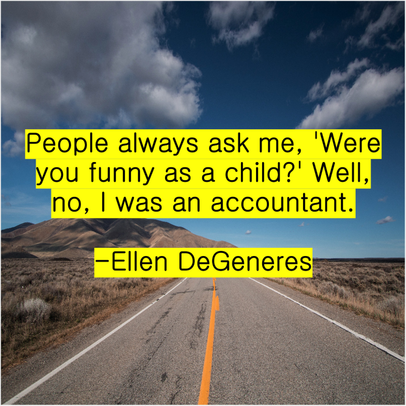 Ellen DeGeneres Ellen DeGeneres – People always ask me, ‘Were… April 12, 2019 admin “People always ask me, ‘Were you funny as a child?’ Well, no, I was an accountant.”-Ellen DeGeneres