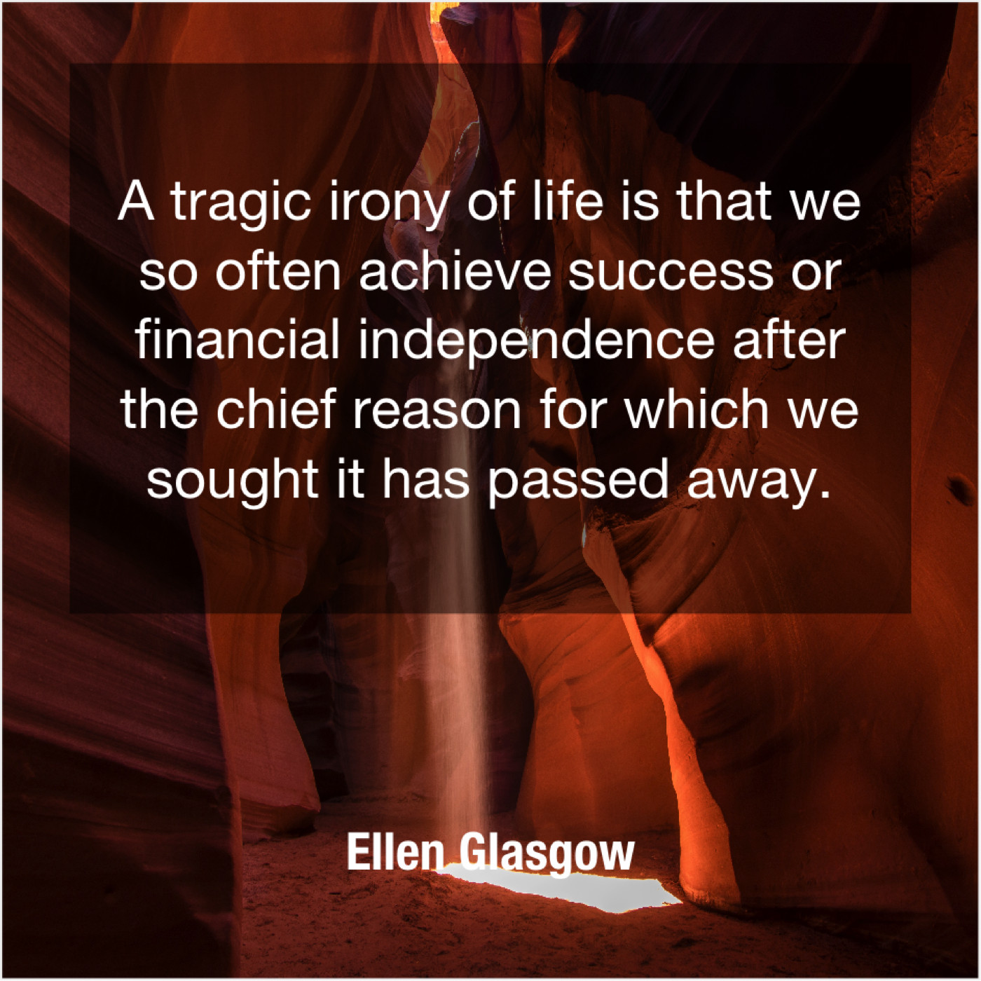 “A tragic irony of life is that we so often achieve success or financial independence after the chief reason for which we sought it has passed away.”